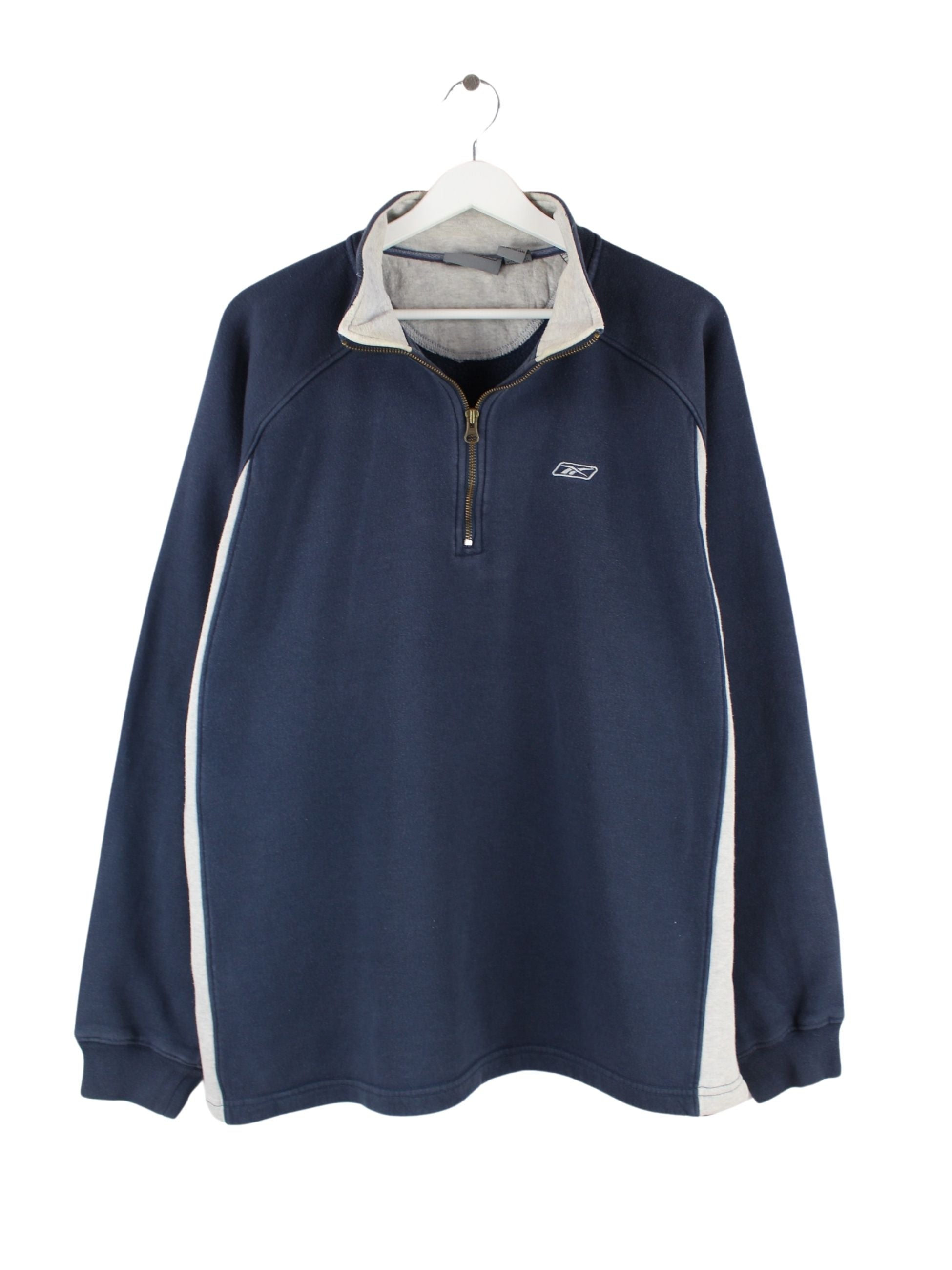 Blauer Sweater mit half Zip der Brand Reebok in Größe XL. Er ist aus einer Baumwollmischung gefertigt und in sehr gutem Zustand im Angebot.