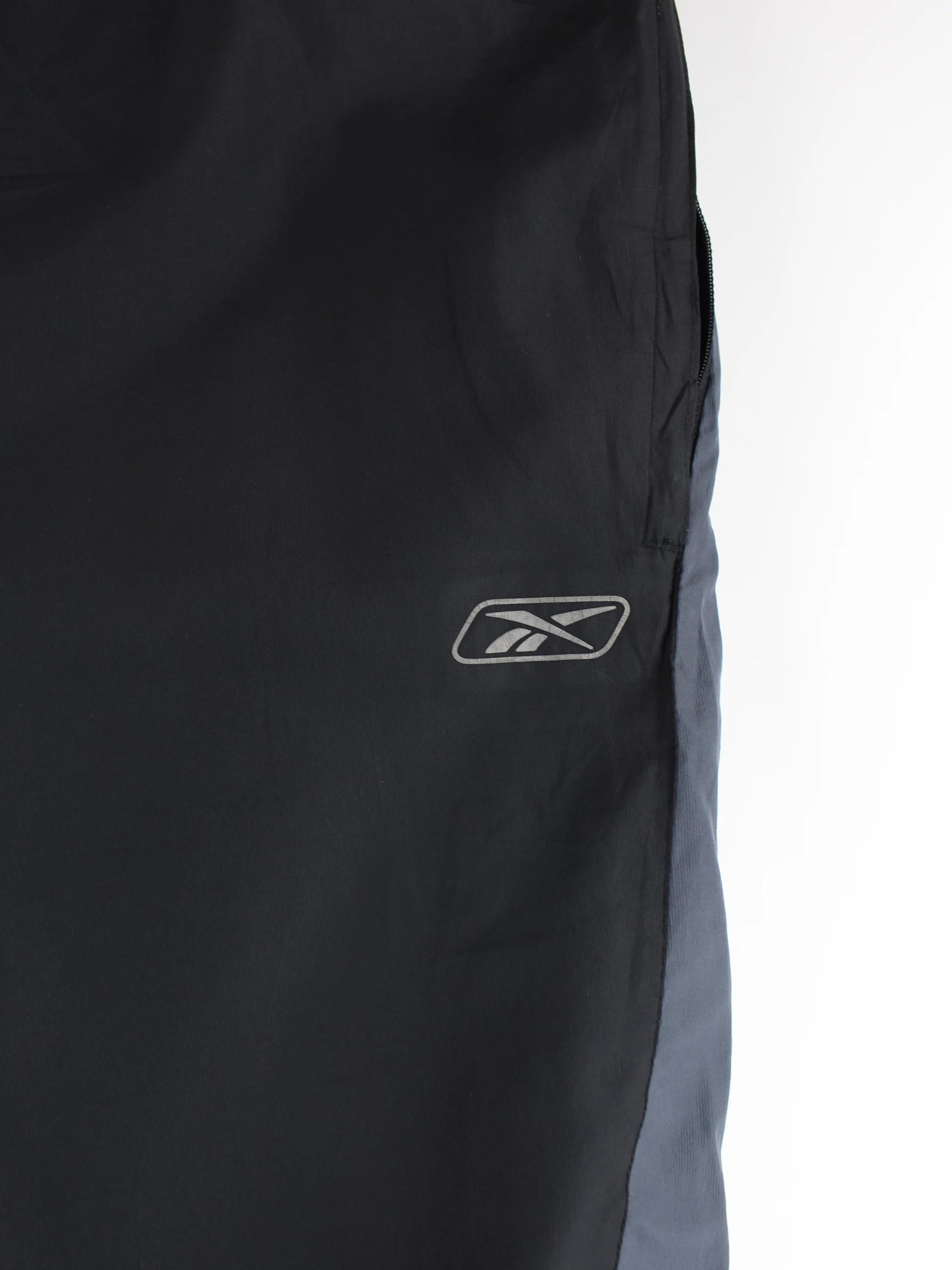 Schwarze Track Pants des Labels Reebok in Größe XXL. Sie sind aus Synthetik produziert und in sehr gutem Zustand bei uns vorrätig.