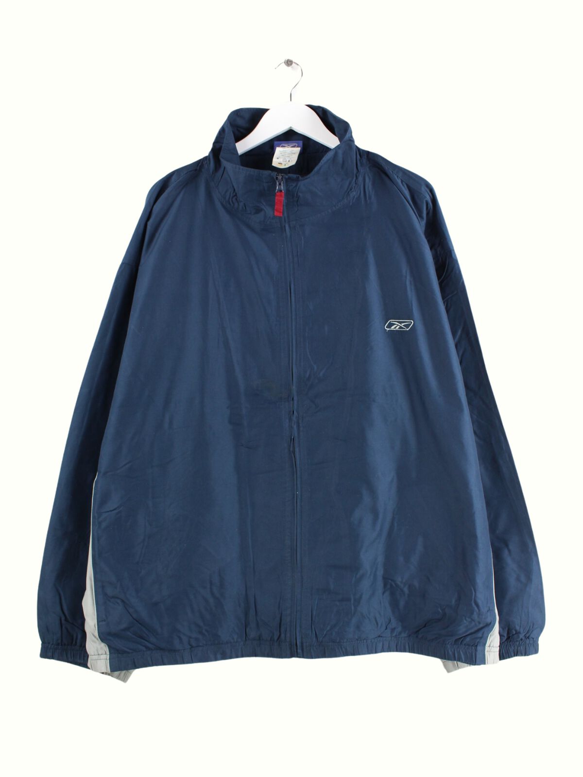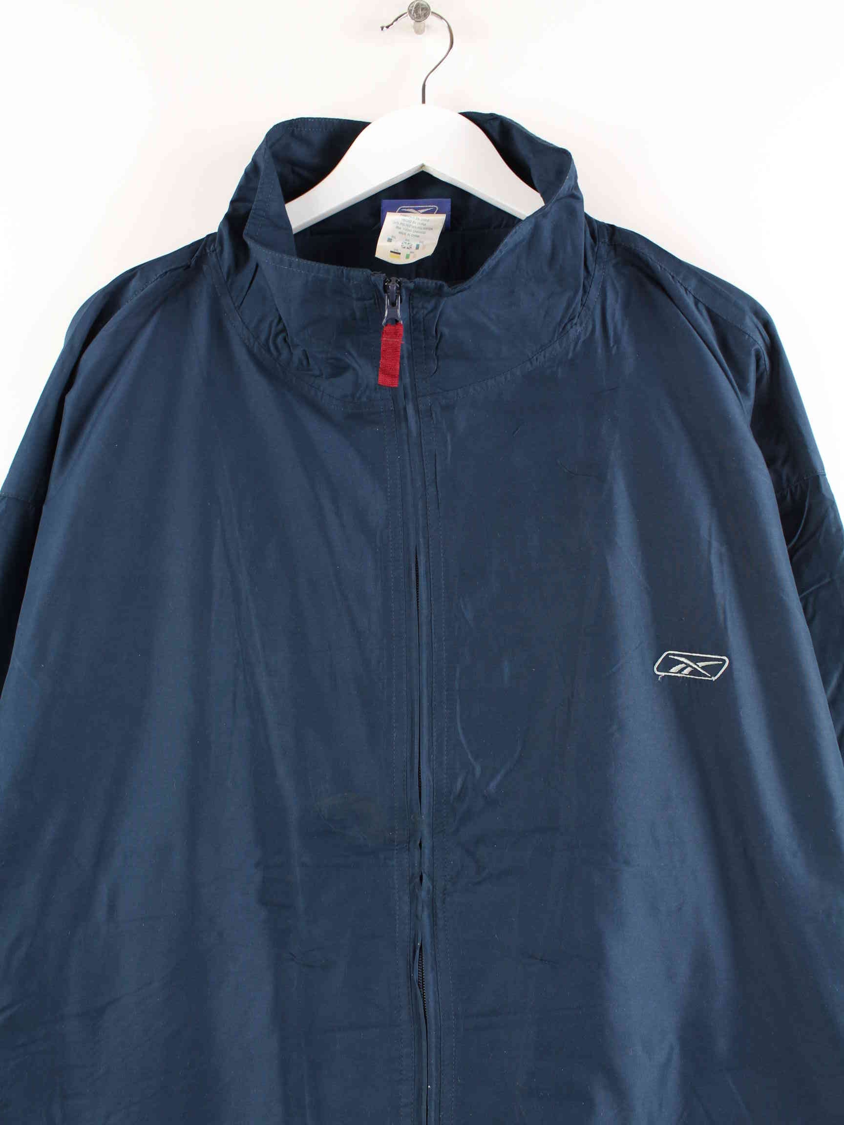 Reebok brand training jacket in size 3XL. It is made of synthetic and is available in blue.