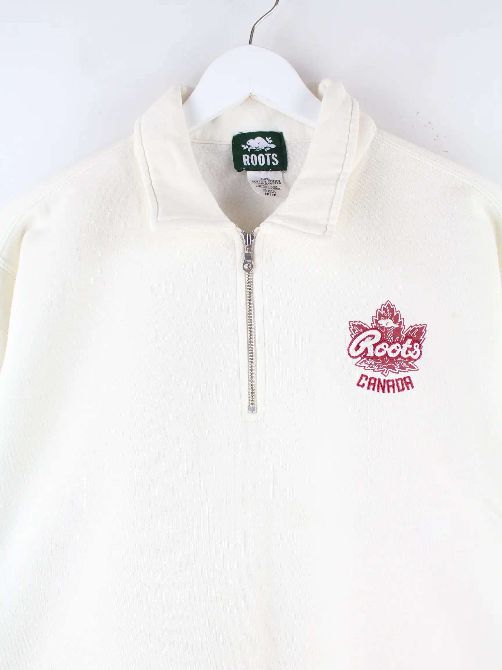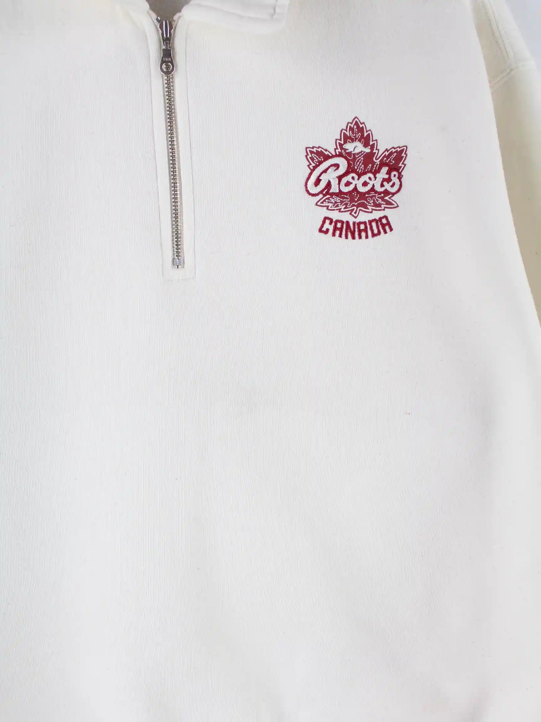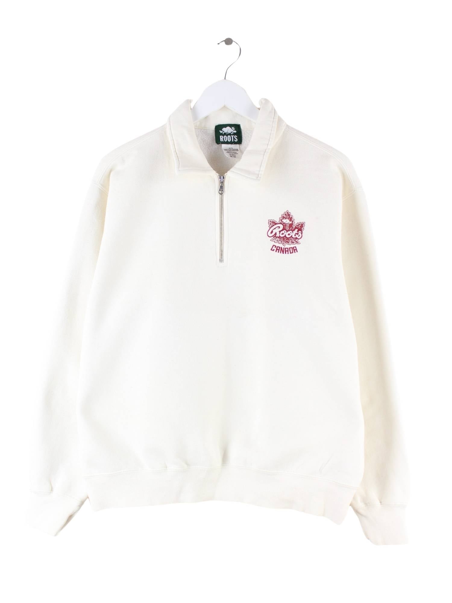 Roots Canada Embroidered Half Zip Sweater Beige M