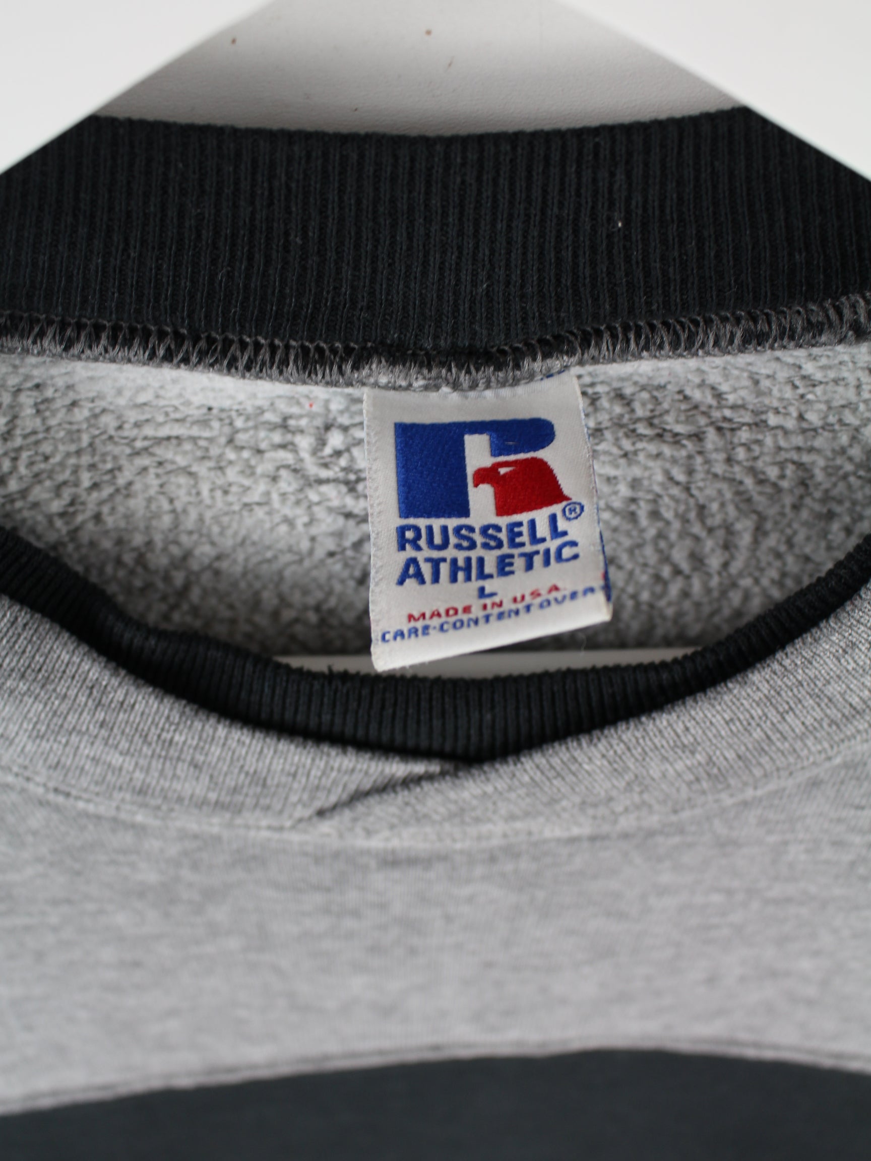Schwarzer Sweater der Brand Russell Athletic in Größe L. Er ist aus einer Baumwollmischung und in gutem Zustand zu haben.