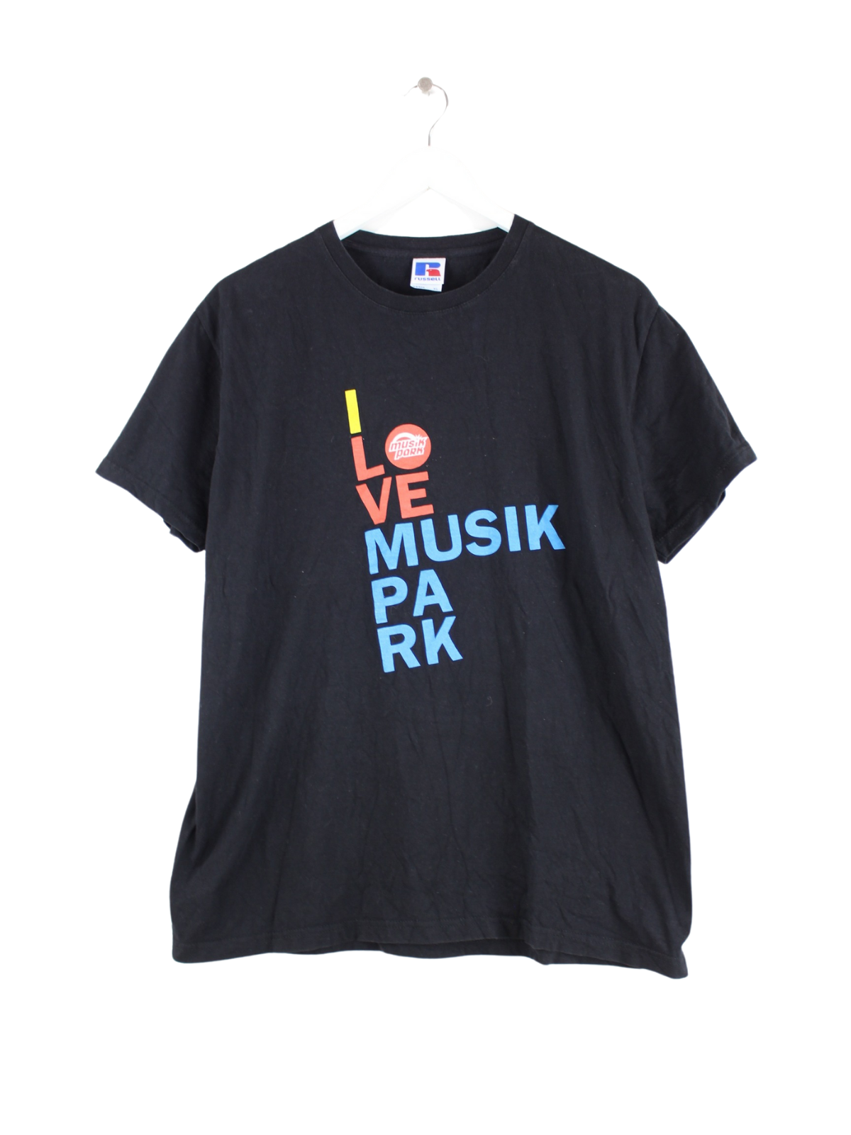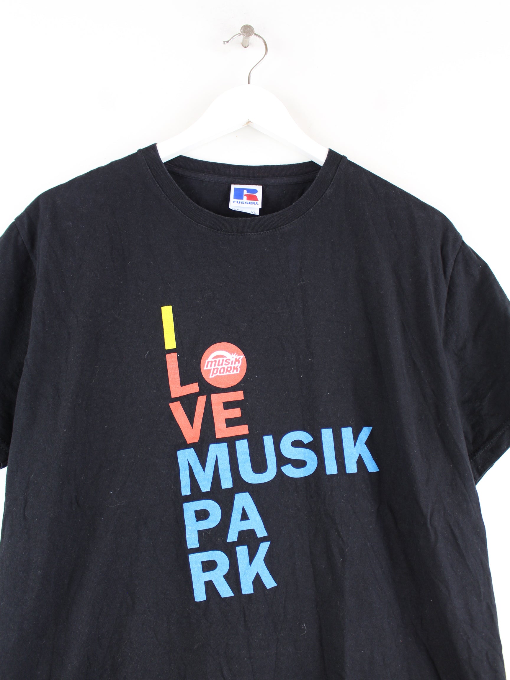 Black T-shirt from Russell Athletic in size XL. It is made of cotton and in very good condition. With a beautiful park print.