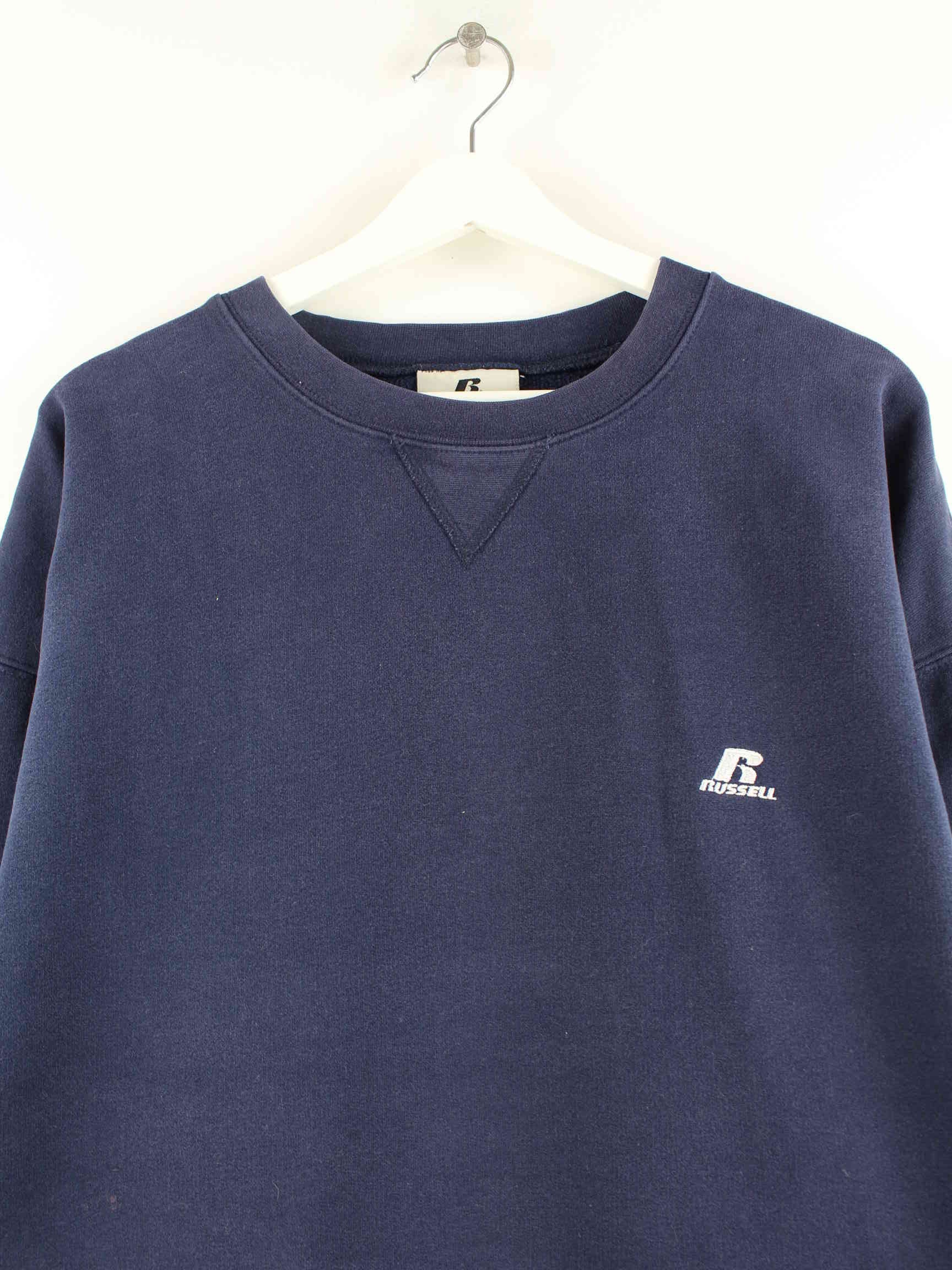 Blue sweater from the brand Russell Athletic in size XL. It is made from a cotton blend and is in stock in good condition.