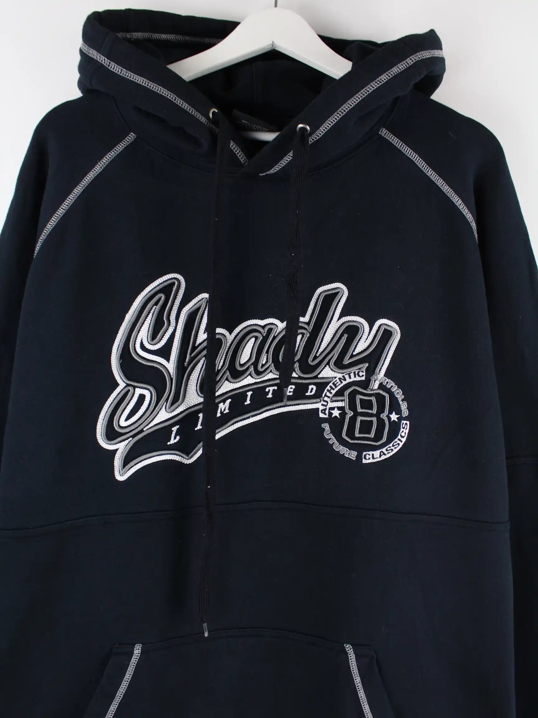 Hoodie des Labels Shady mit Stickereien in Größe 3XL aus Anfang der 2000'er. Er ist aus einer Baumwollmischung gefertigt und in Schwarz in Stock.