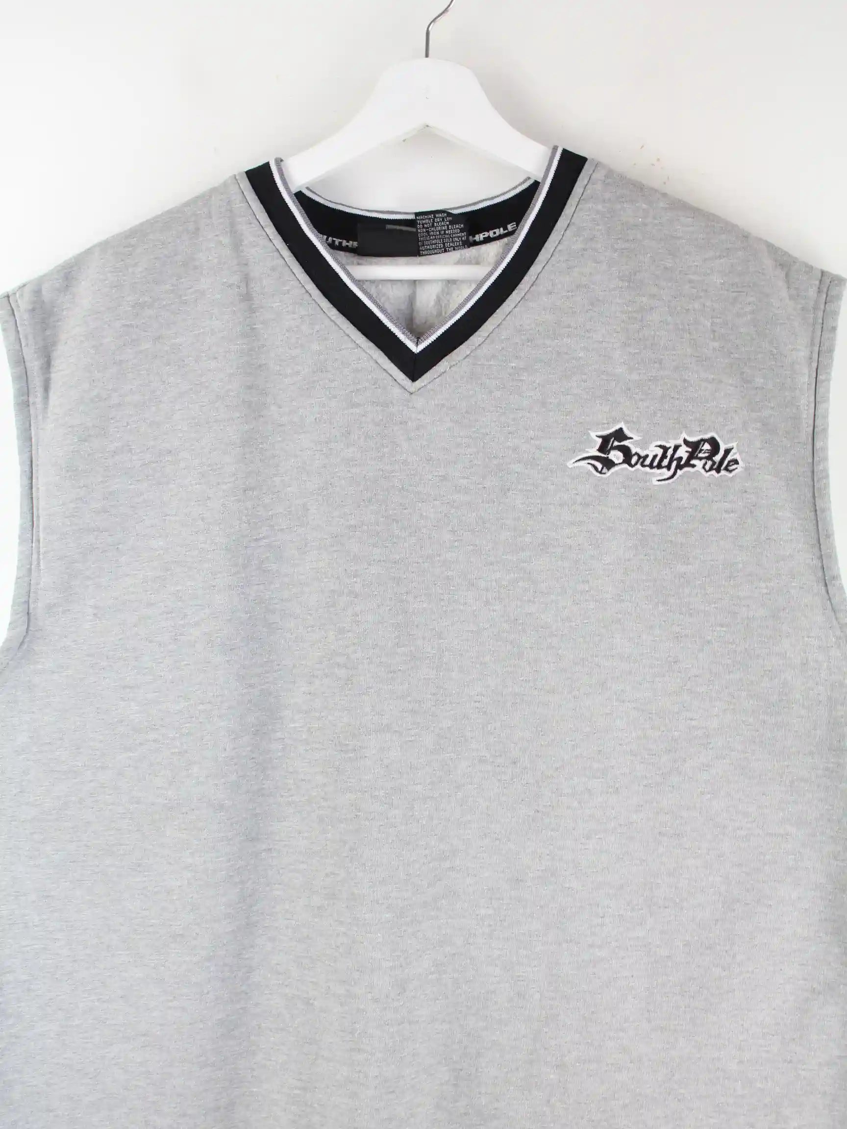 Grauer Pullunder mit Stick des Labels Southpole in Größe XL. Er ist aus einer Baumwollmischung hergestellt und in sehr gutem Zustand zu bekommen.