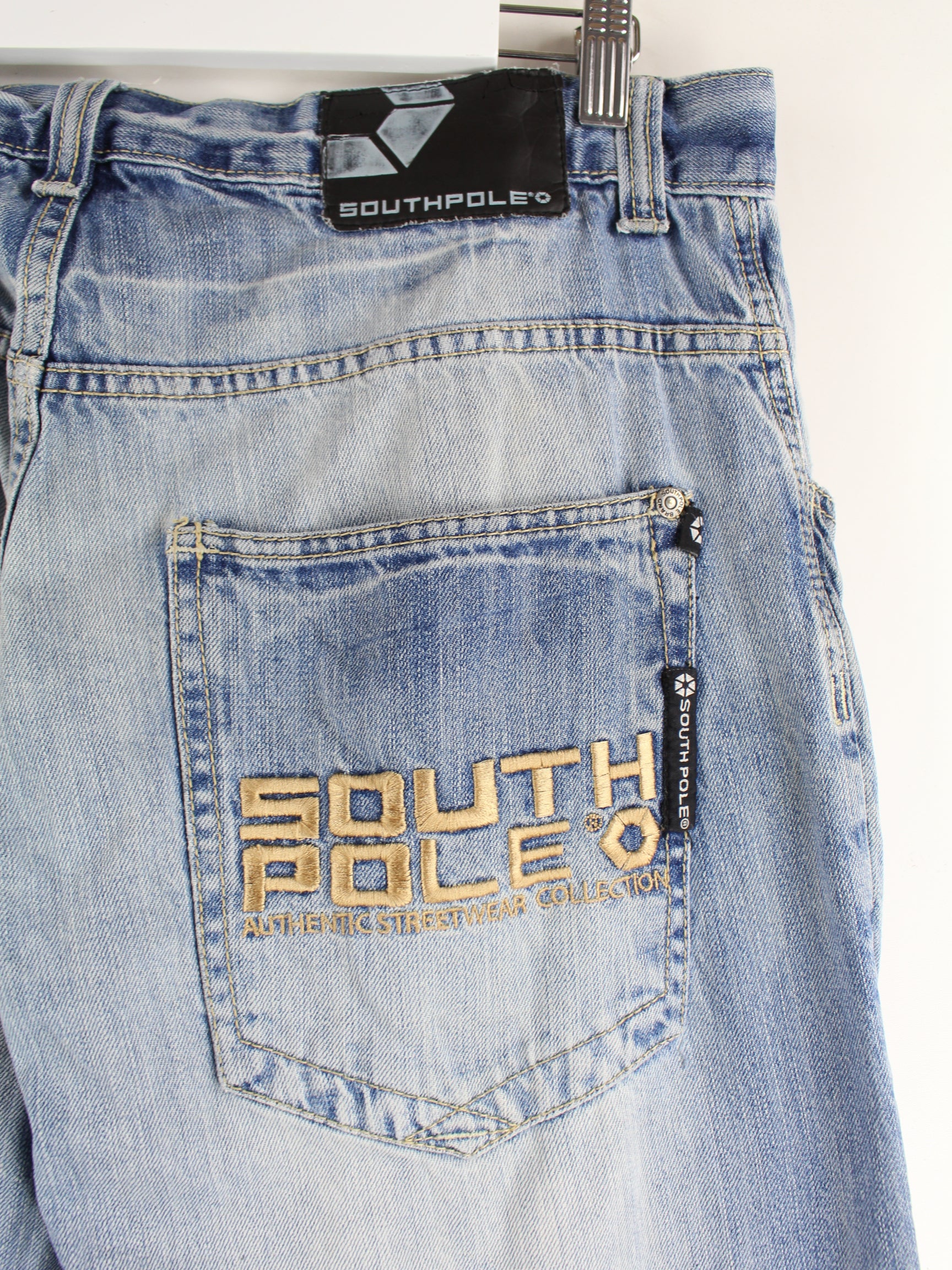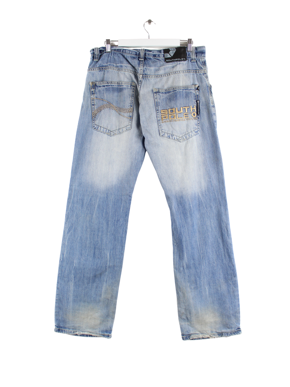 Blue jeans from the label Southpole in W34 x L32 from the early 2000s. We would describe the condition as 'fine' (see pictures).