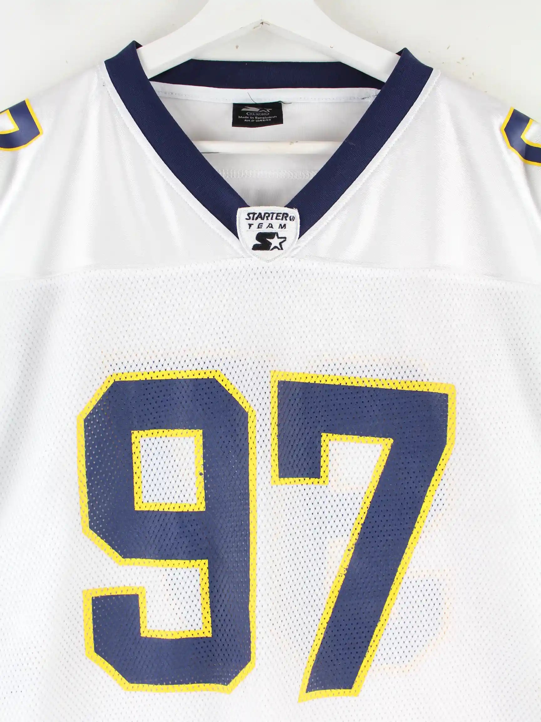 Weißer Jersey von Starter in Größe XL. Es ist aus Synthetik gemacht und in gutem Zustand zu haben.