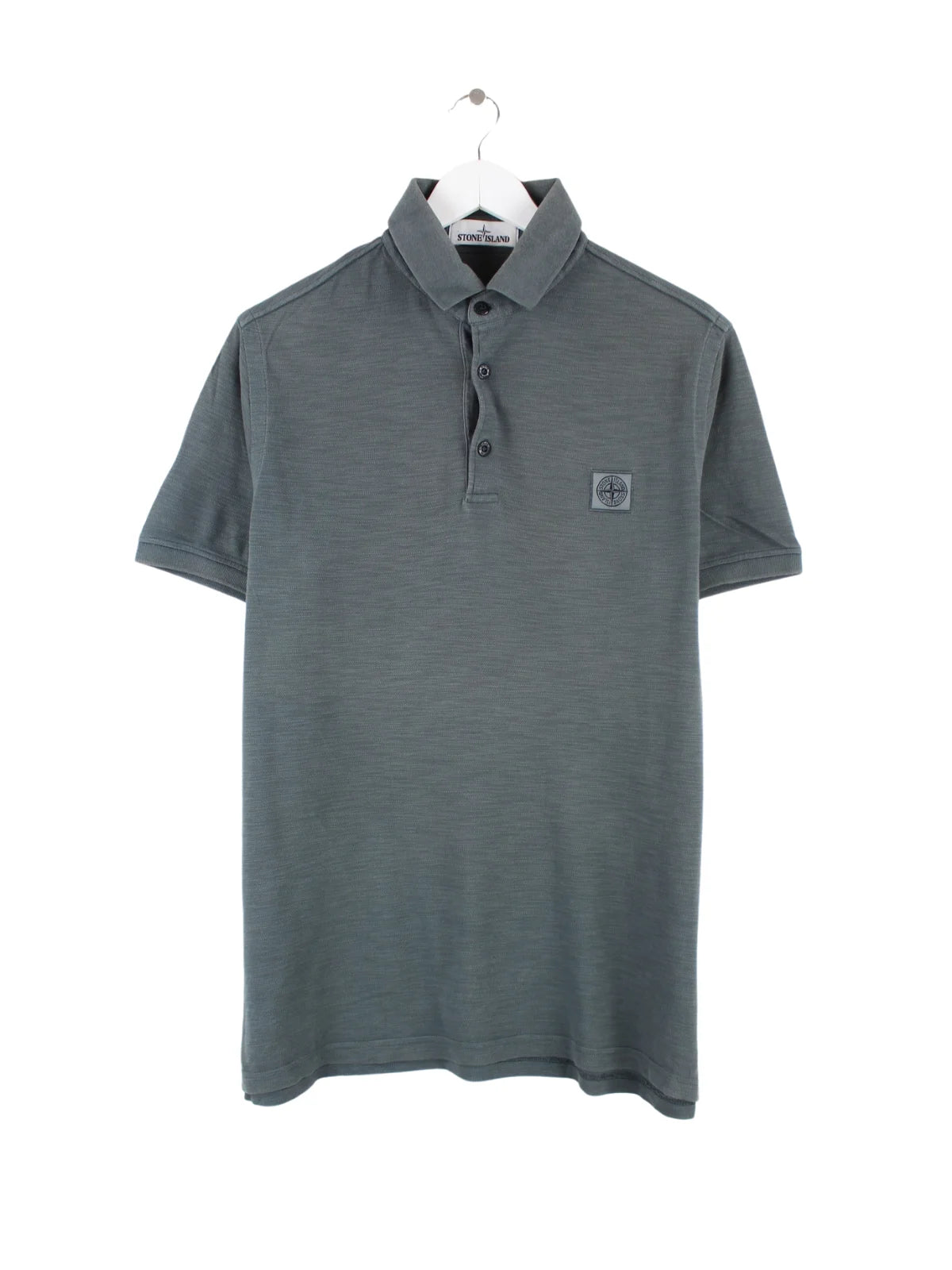 Graues Poloshirt aus dem Hause Stone Island in Größe L. Es ist aus Baumwolle angefertigt und in sehr gutem Zustand bei uns zu bekommen.
