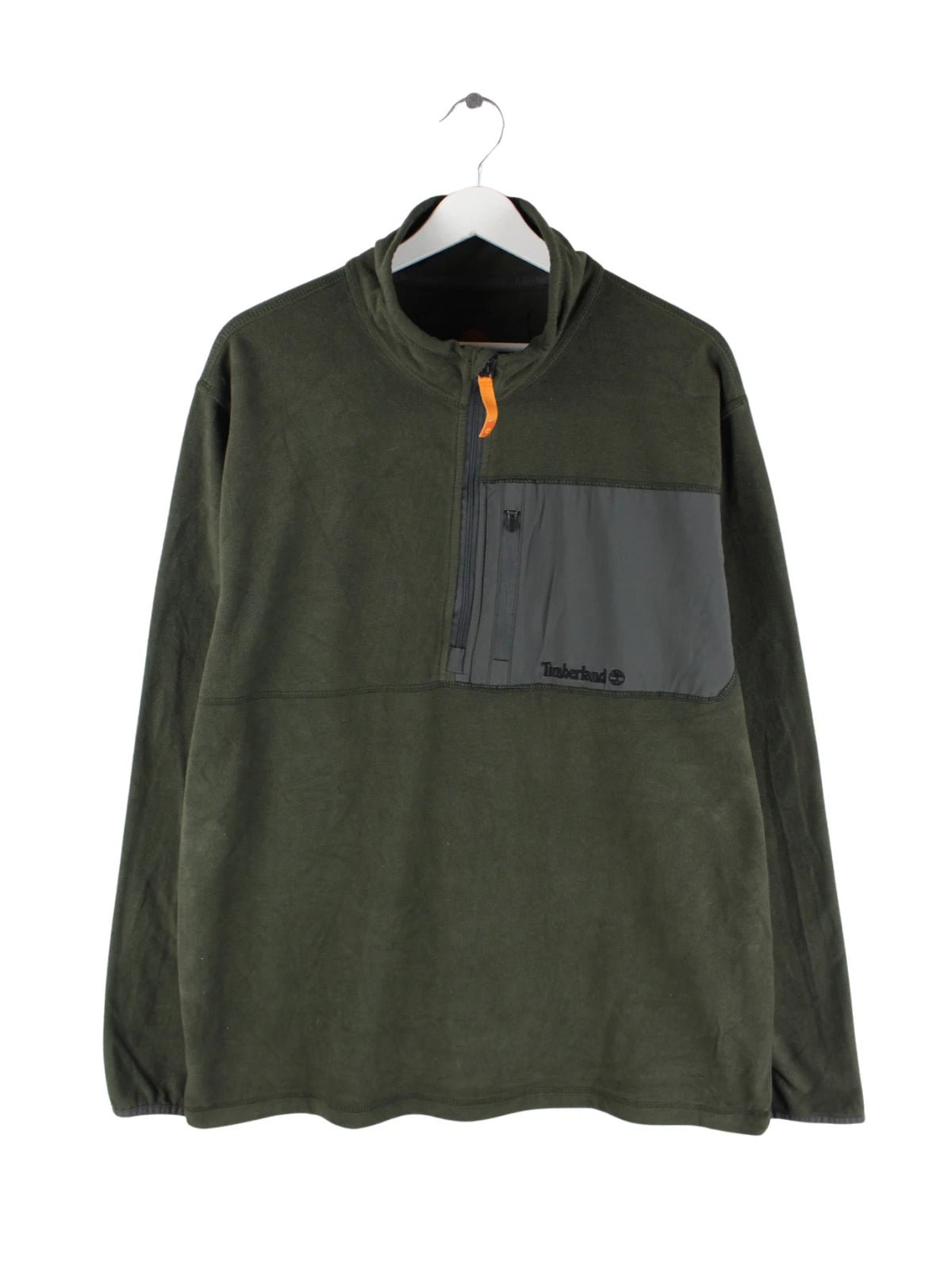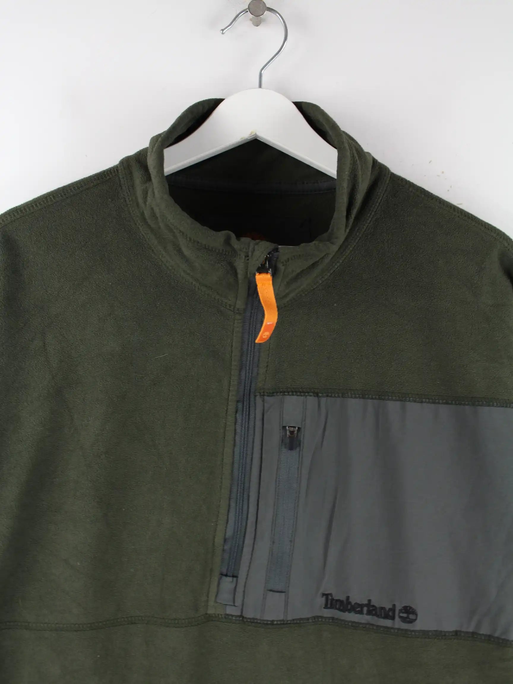 Sweater von Timberland mit half Zip in Größe XL. Er ist aus gemütlichem Fleece hergestellt und in Grün bei uns vorrätig.