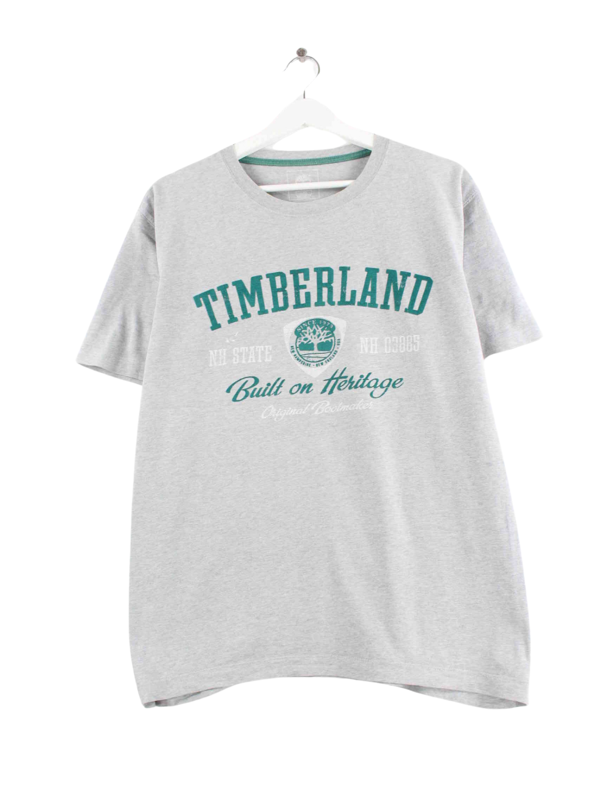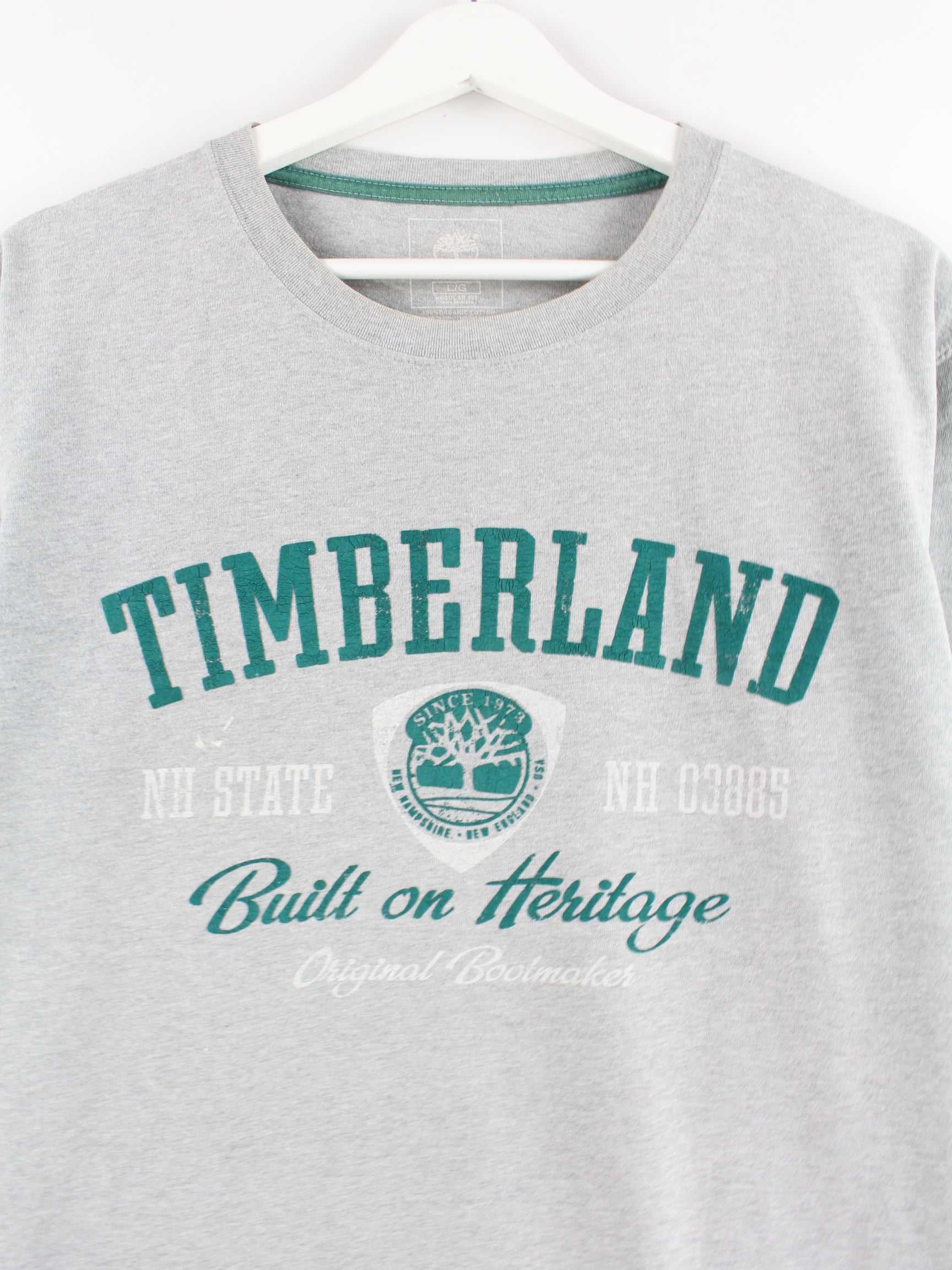 Gray t-shirt from Timberland in size L. It is made of cotton and in good condition on stock.