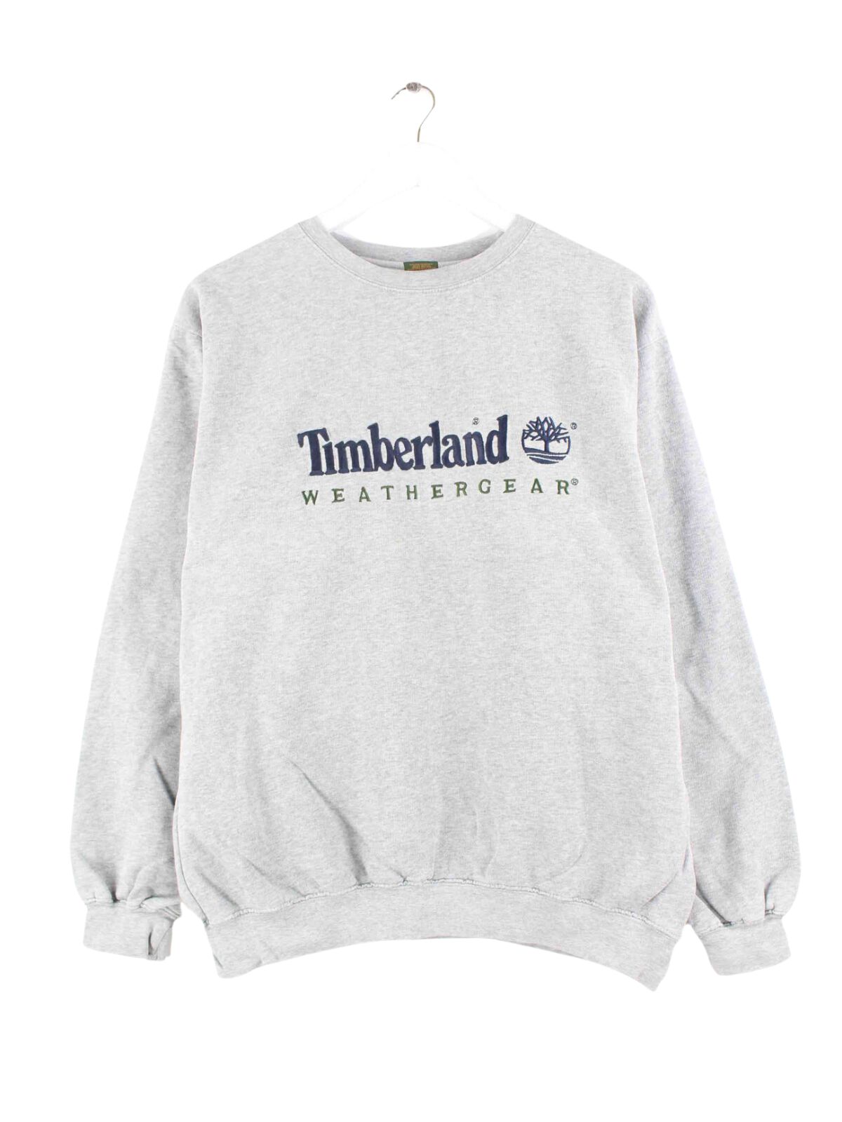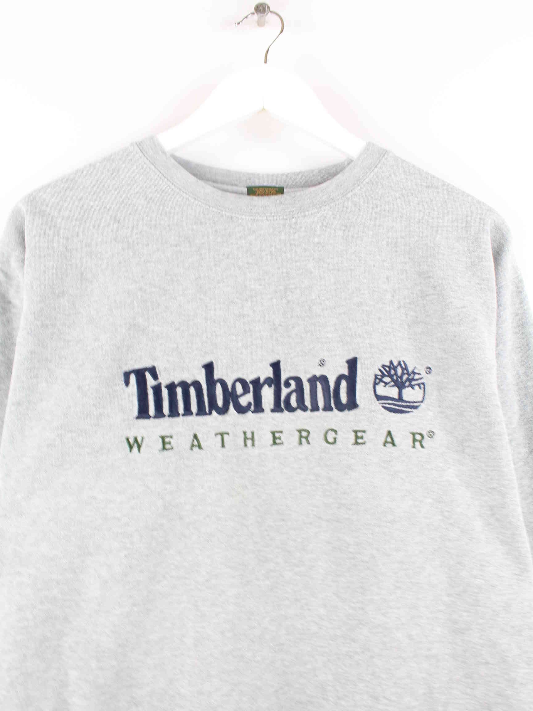 Sweater from the brand Timberland with embroidered logo in size S from the early 2000s. It's made from a cotton blend and comes in gray.