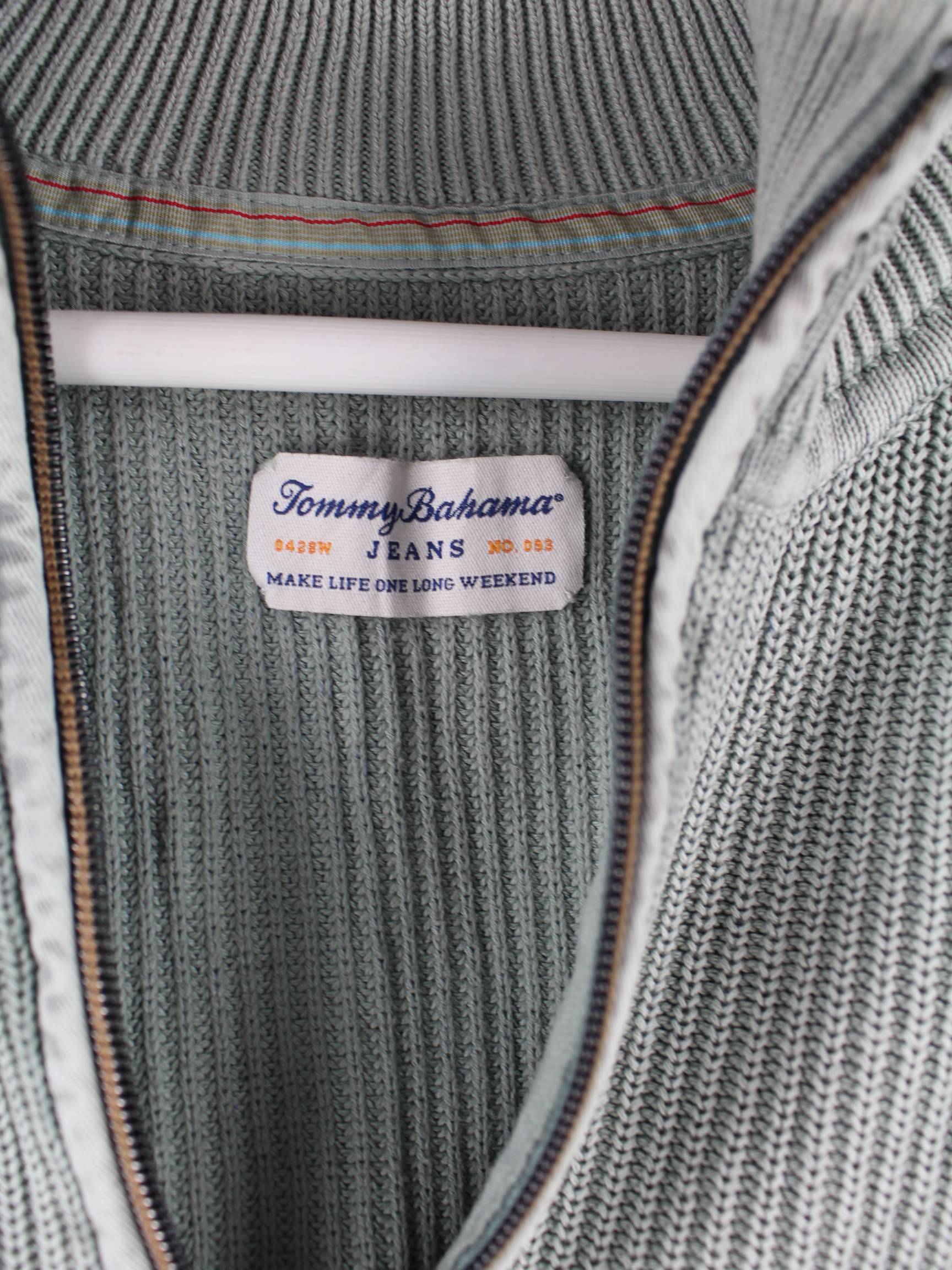 Grauer Pullover mit half Zip von Tommy Bahama in Größe XL. Er ist aus Baumwolle und in gutem Zustand bei uns zu bekommen.