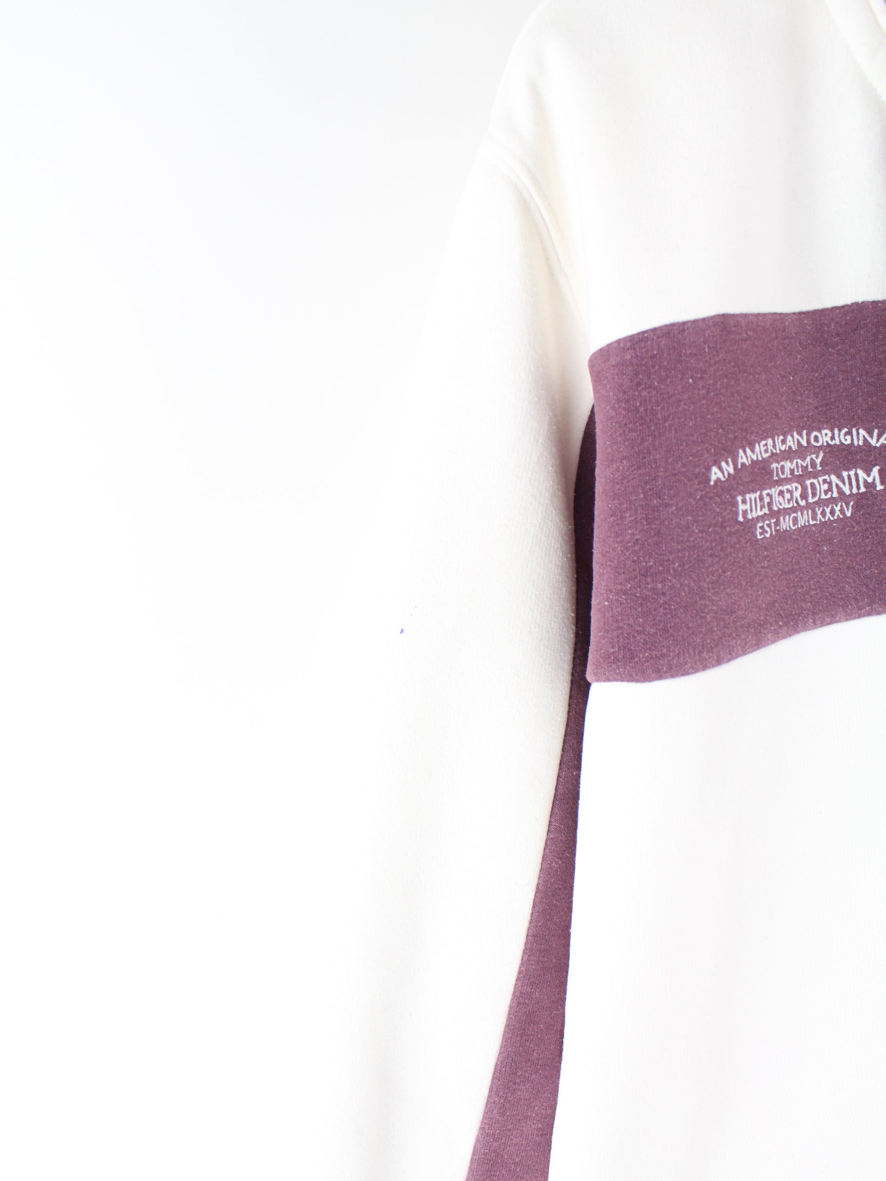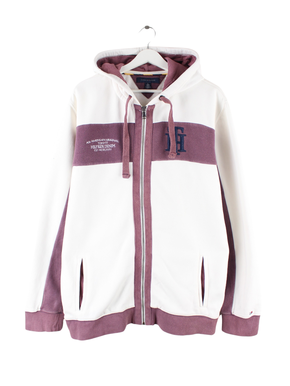 Hoodie der Brand Tommy Hilfiger mit Stickereien und Zip in Größe XL. Er ist aus einer Baumwollmischung gemacht und in Weiß bei uns zu bekommen.