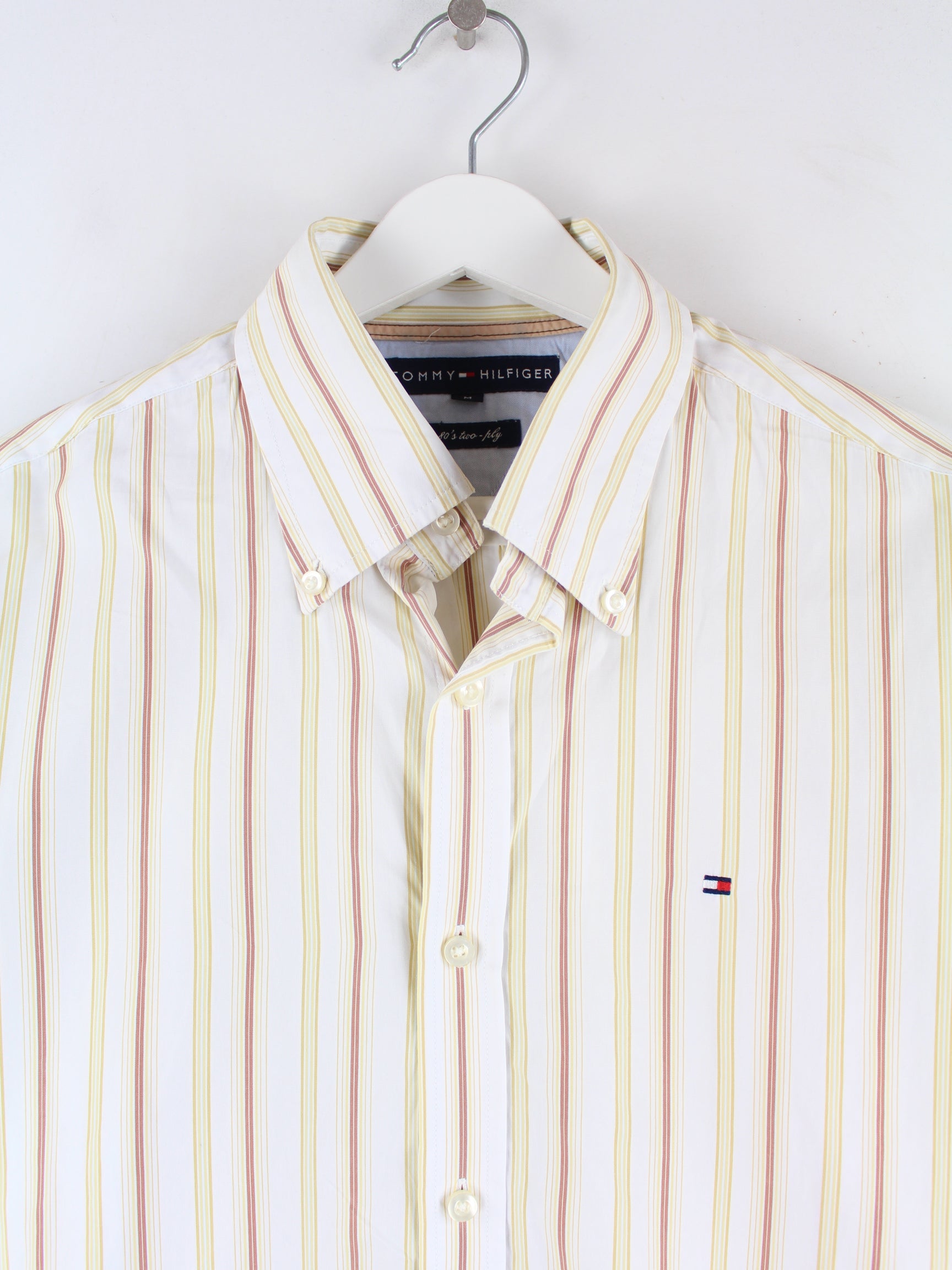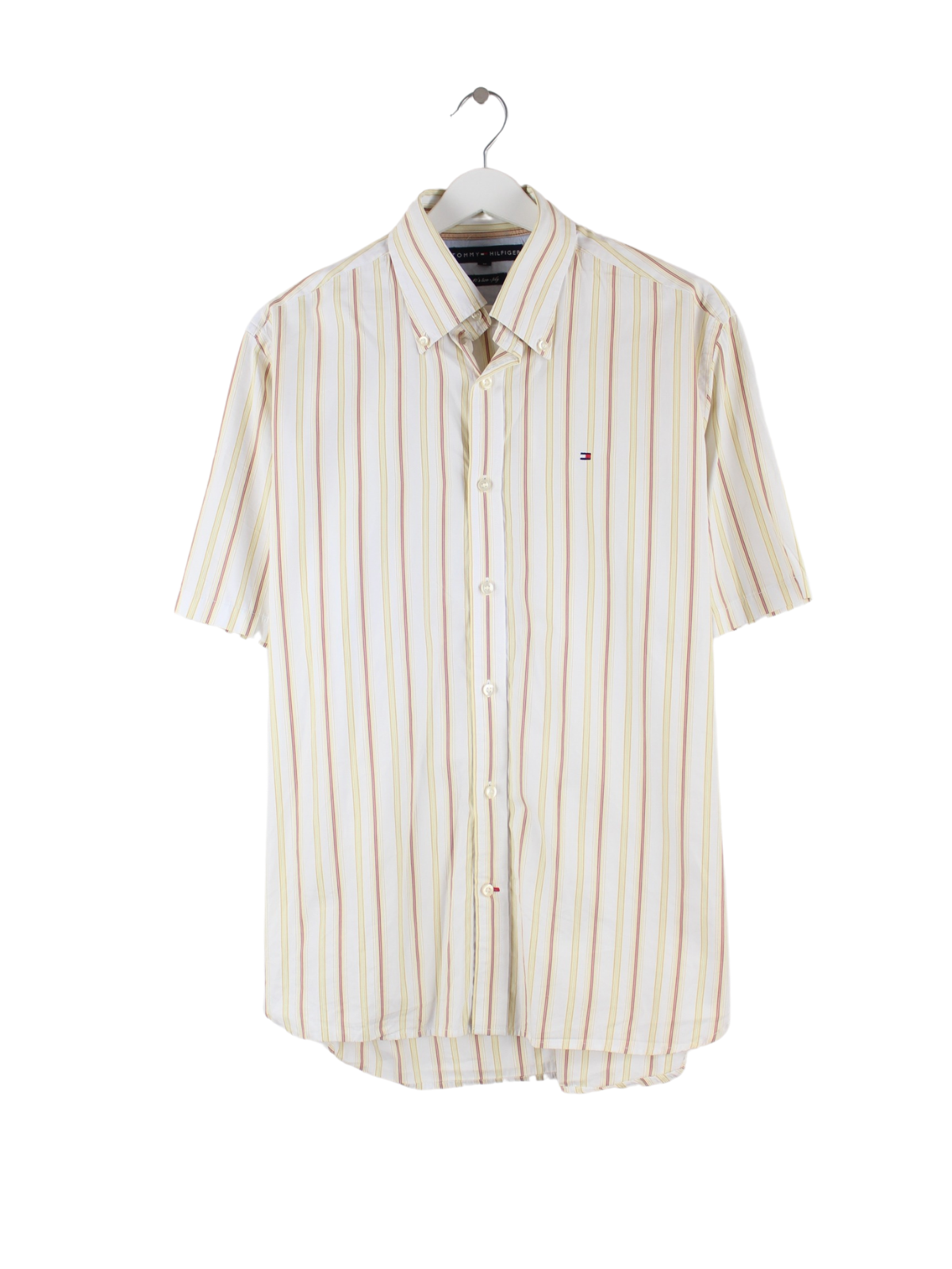 Tommy Hilfiger 00s Striped Short Sleeve Shirt Beige M