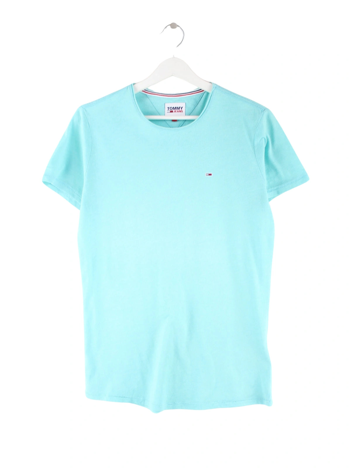 Türkisfarbenes T-Shirt vom Brand Tommy Hilfiger in Größe XS. Es ist aus Baumwolle hergestellt und in gutem Zustand im Bestand.