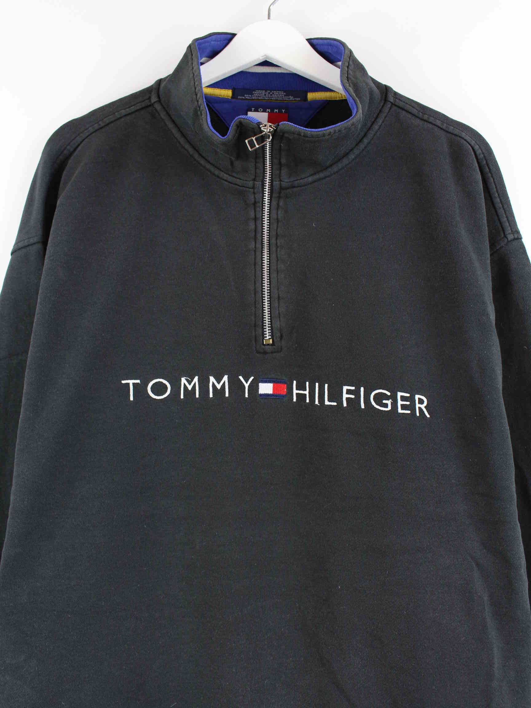 Sweater from the Tommy Hilfiger label with embroidered motifs and a half zip in size L. It is made from a cotton blend and is available in black.