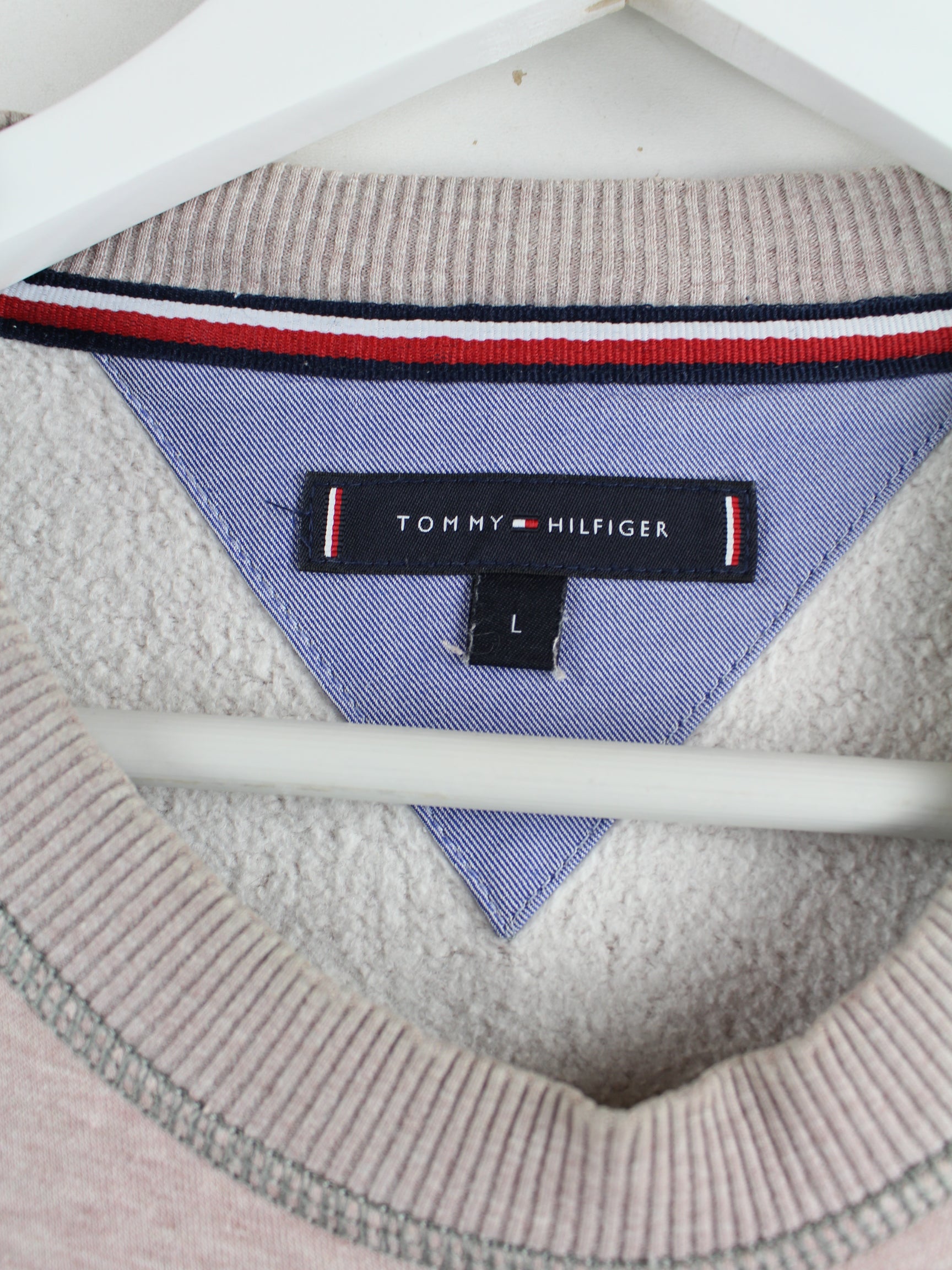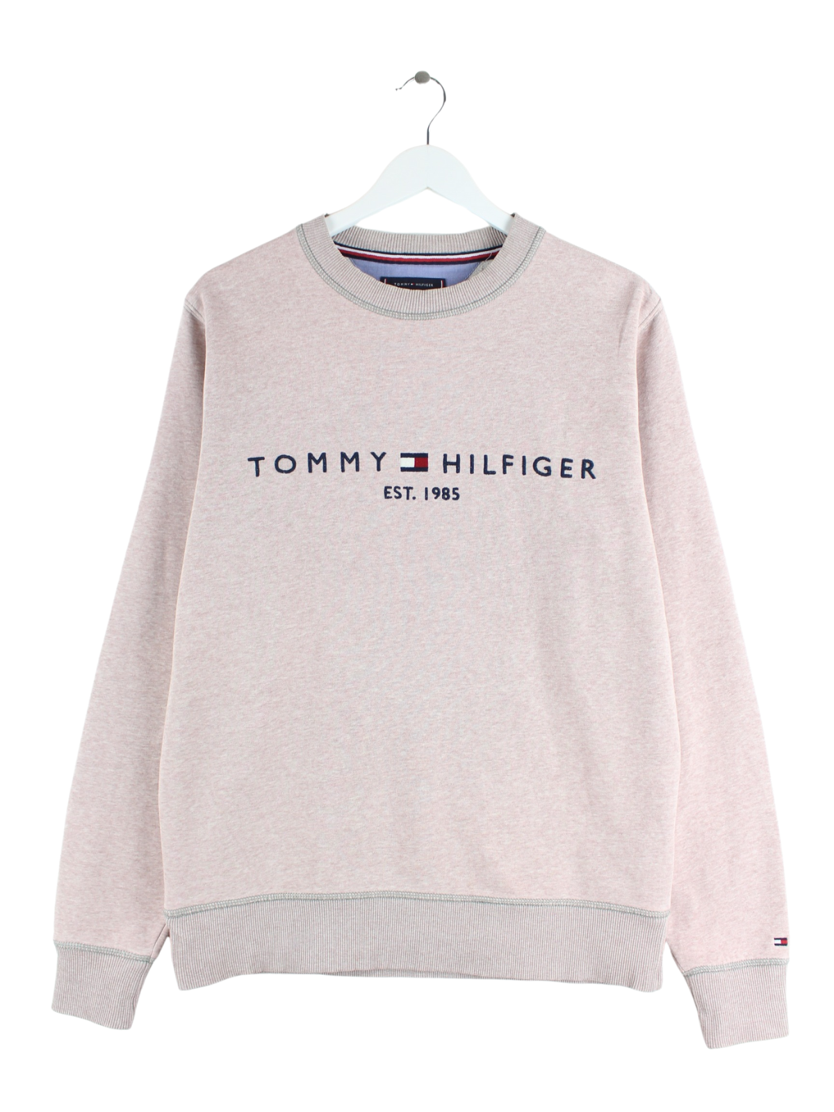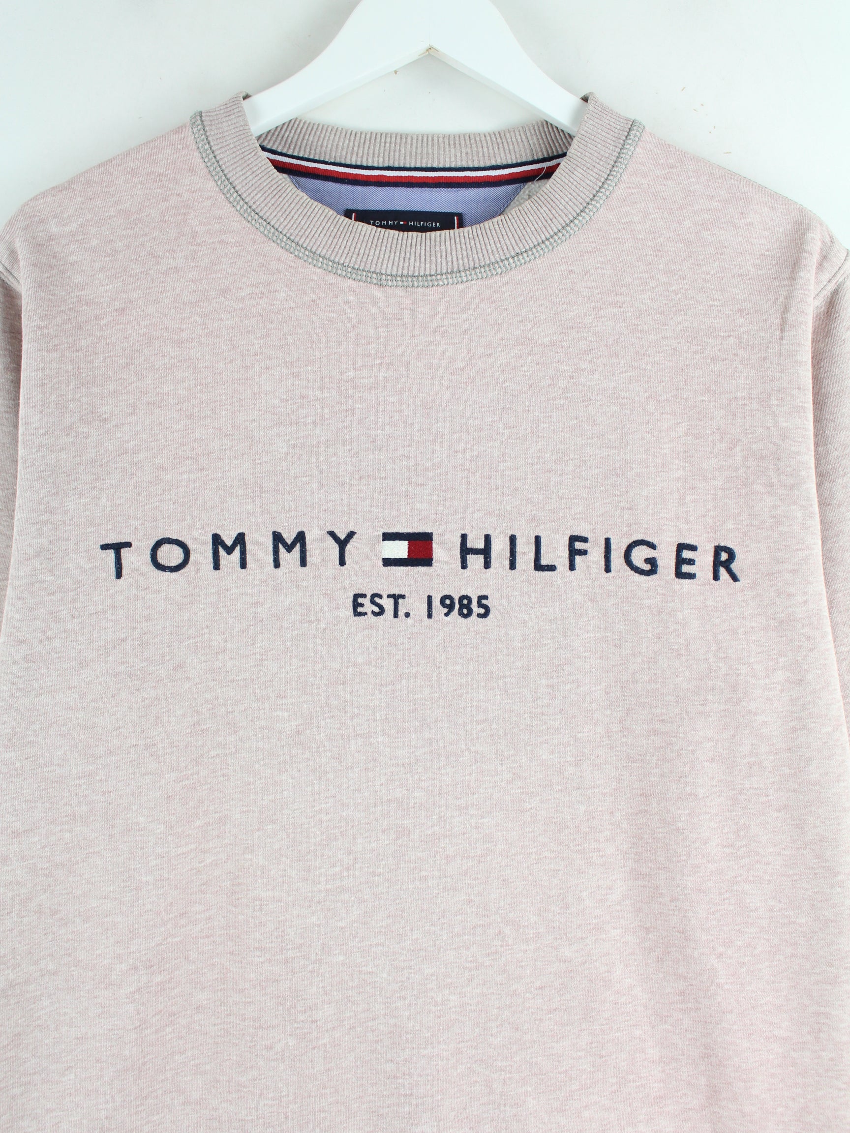 Sweater vom Brand Tommy Hilfiger mit gestickten Motiven in Größe L. Er ist aus einer Baumwollmischung gefertigt und in Rosa vorrätig.