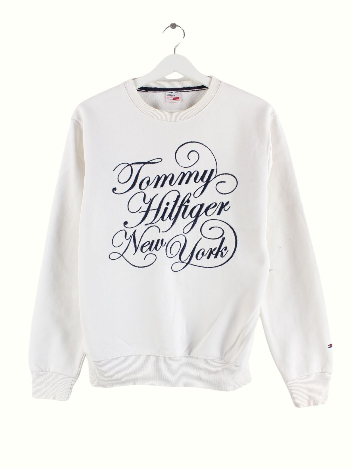 Sweater from Tommy Hilfiger with embroidery in size S. It is made from a cotton blend and is available in white.