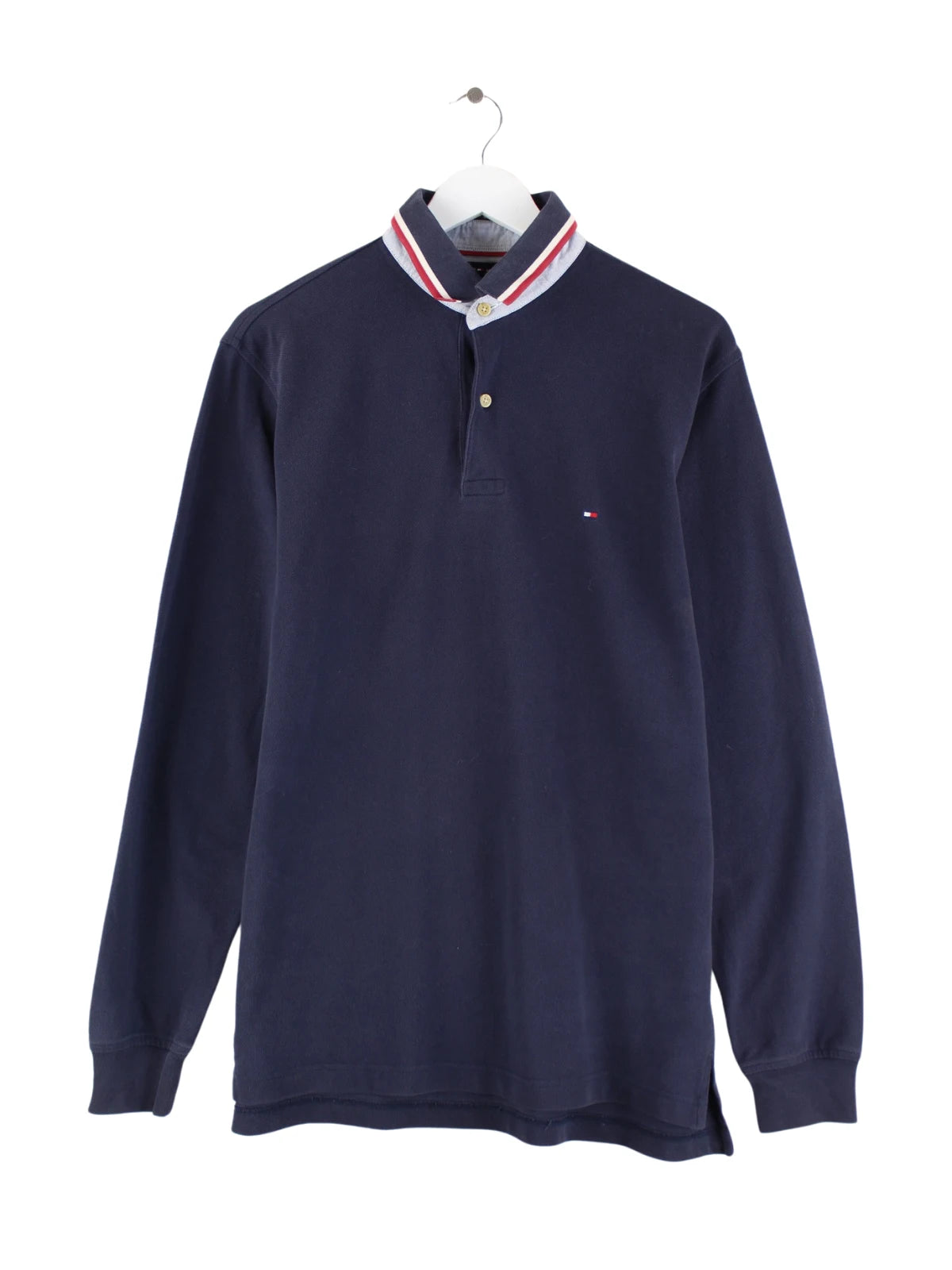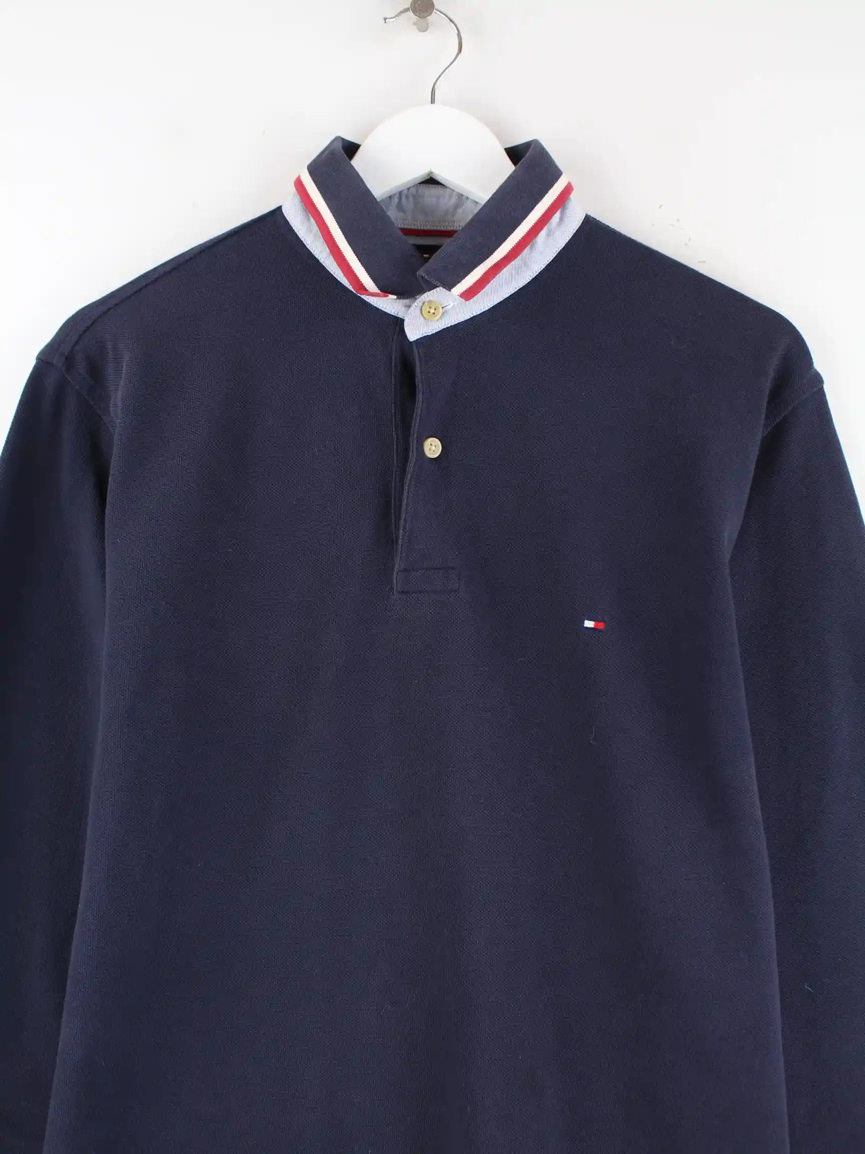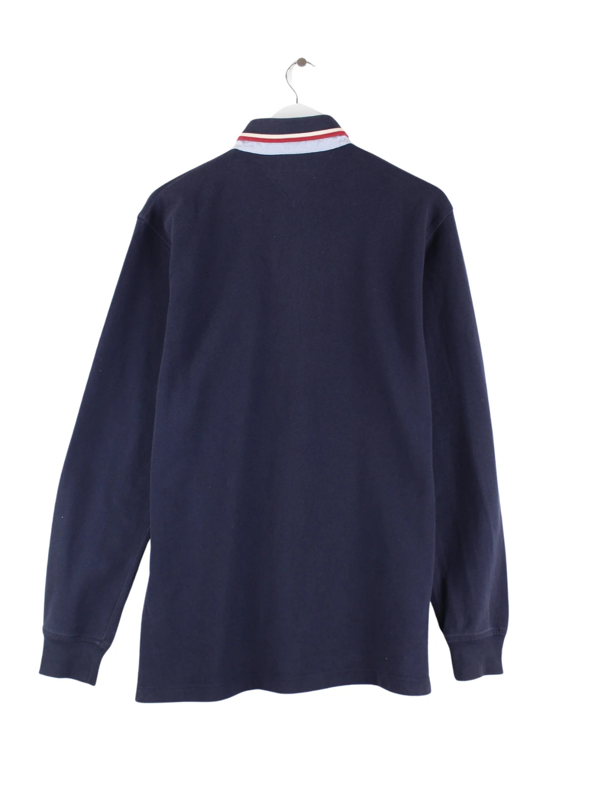 Blaues Poloshirt von Tommy Hilfiger in Größe M. Es ist aus Baumwolle hergestellt und in gutem Zustand bei uns vorrätig.