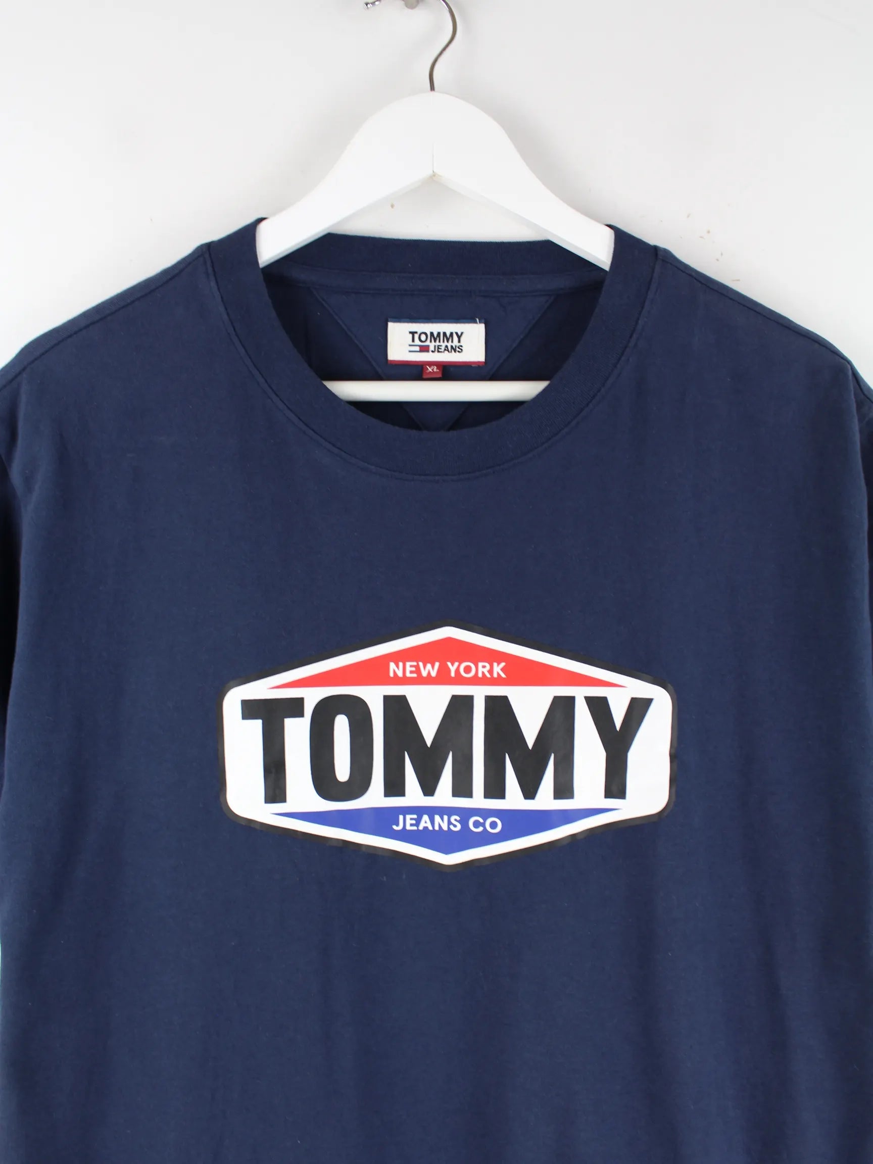 Blaues T-Shirt des Labels Tommy Hilfiger in Größe XL. Es ist aus Baumwolle gemacht und in sehr gutem Zustand zu bekommen. Mit schönem Logo Print.