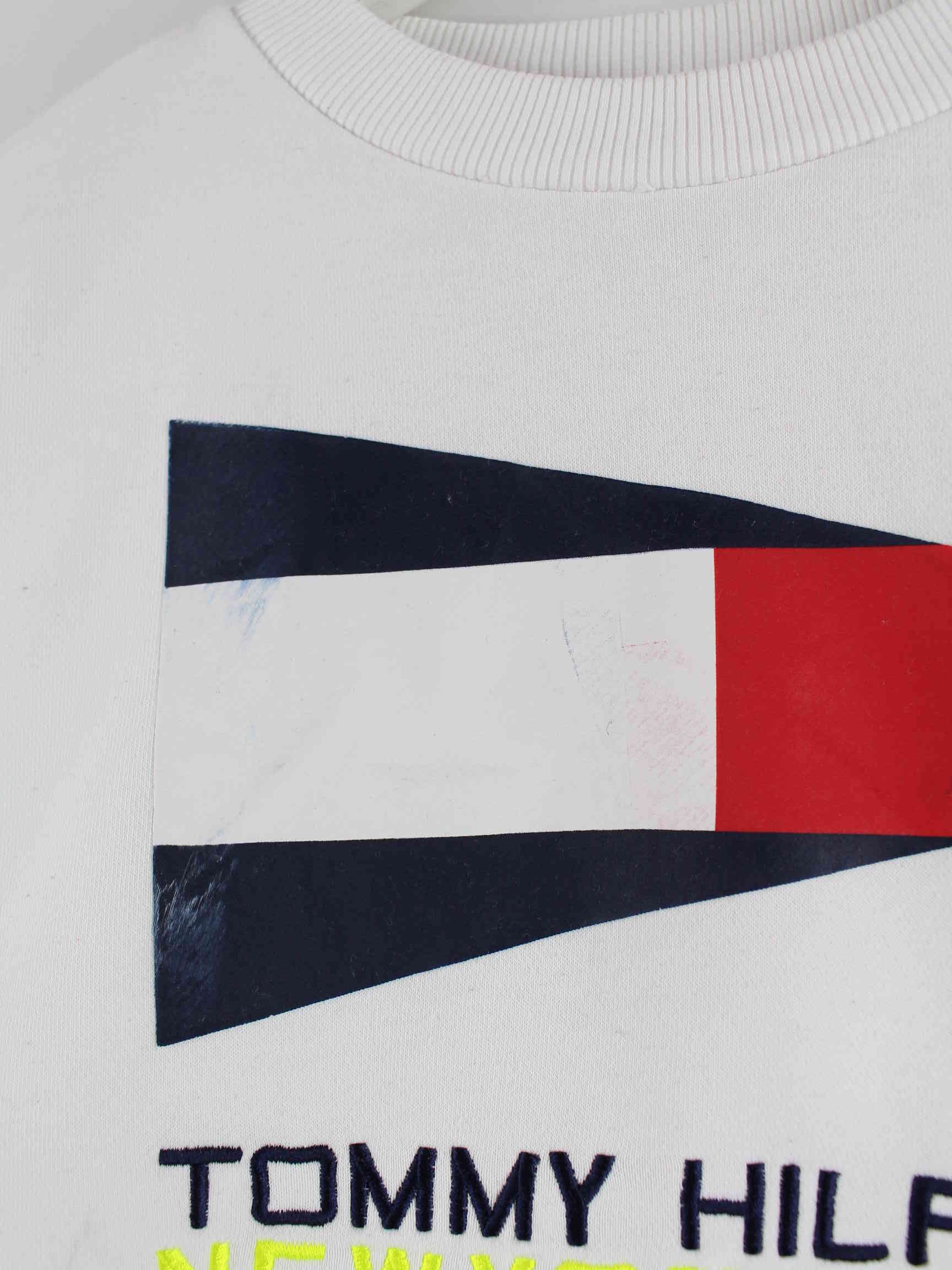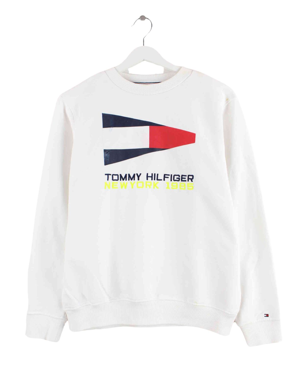 White sweater from Tommy Hilfiger in size XS. It is made from a cotton blend. We would describe the condition as 'OK' (see pictures).