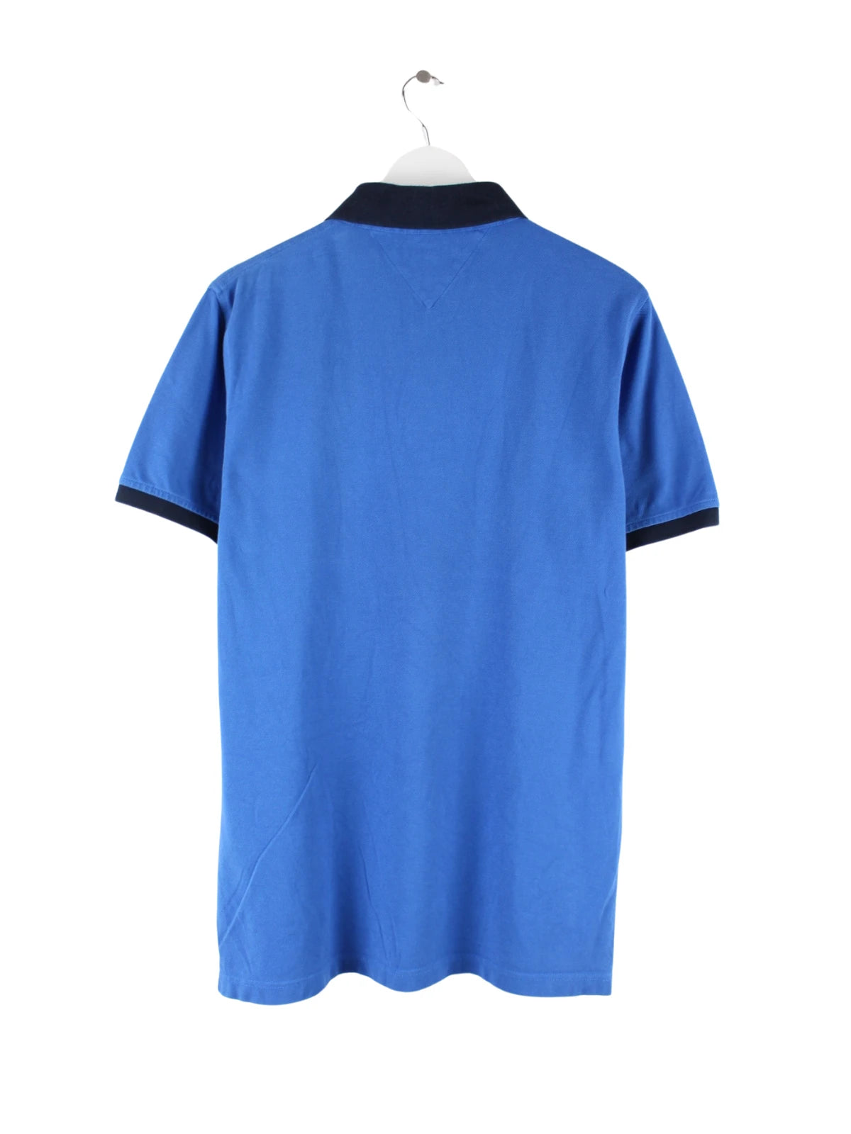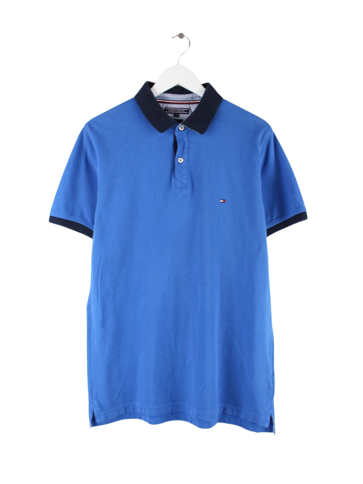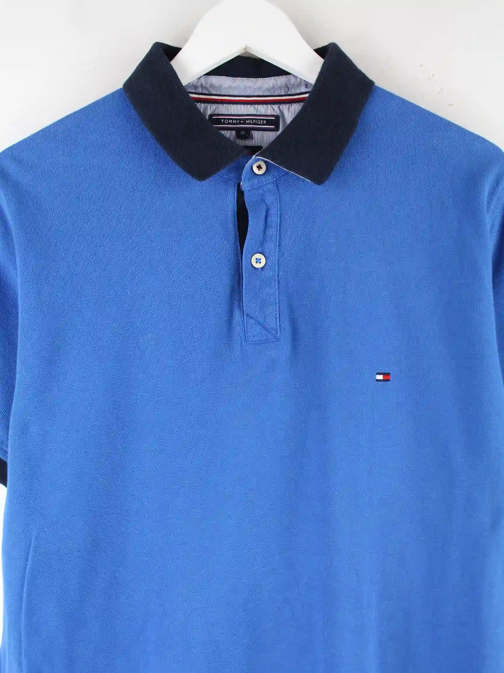 Blaues Poloshirt vom Brand Tommy Hilfiger in Größe XL. Es ist aus Baumwolle gemacht und in sehr gutem Zustand im Bestand.