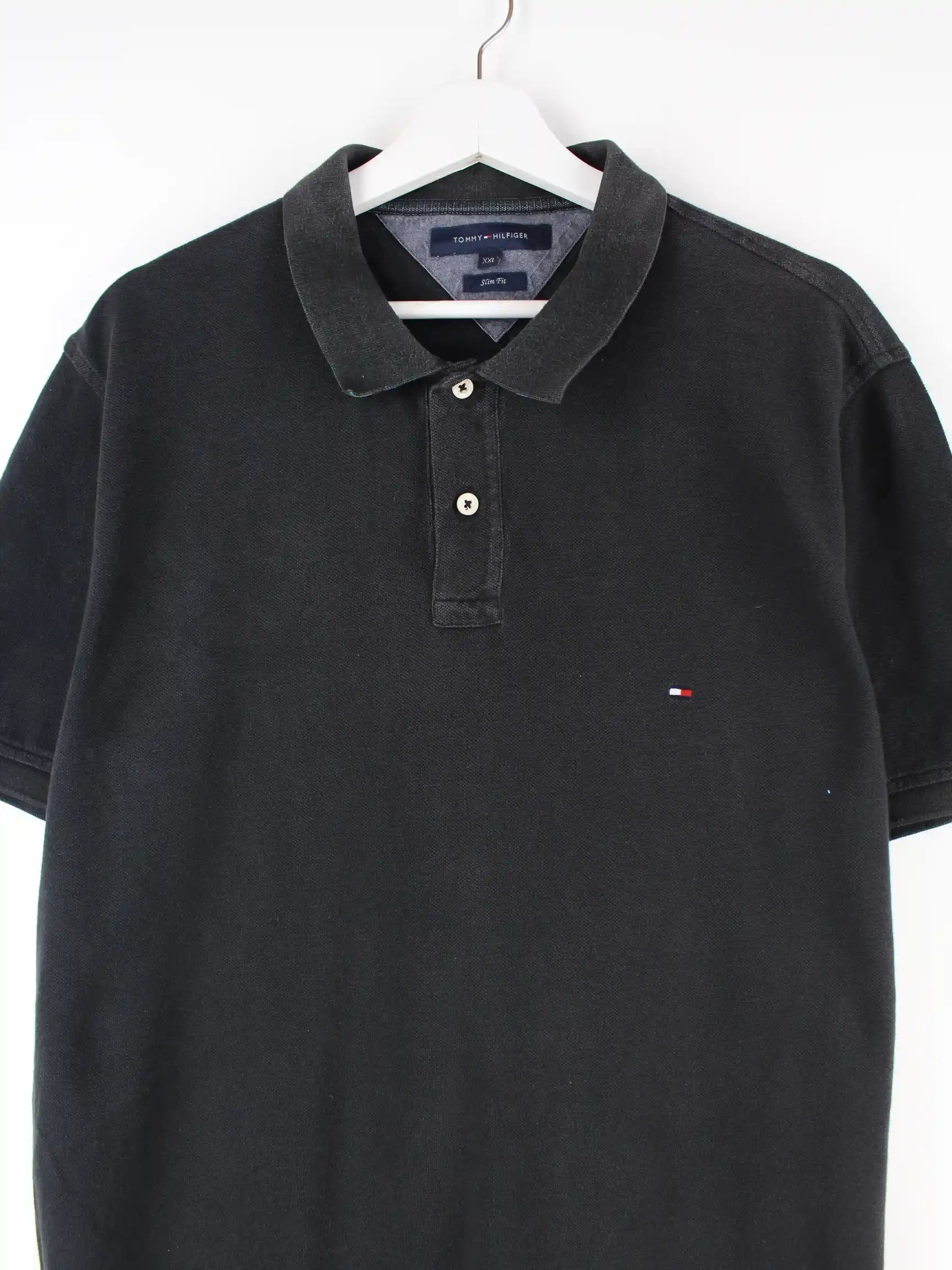 Schwarzes Poloshirt des Labels Tommy Hilfiger in Größe XXL. Es ist aus Baumwolle gefertigt und in gutem Zustand im Angebot.