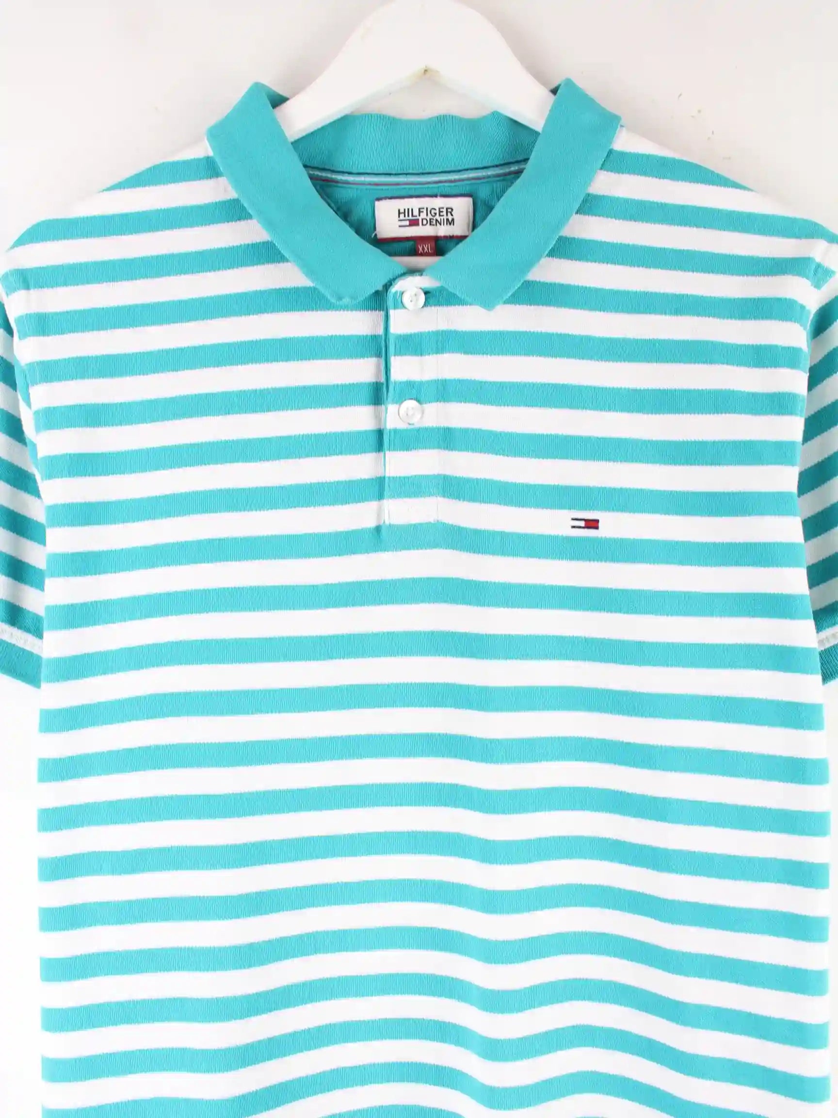 Türkisfarbenes Poloshirt aus dem Hause Tommy Hilfiger in Größe XXL. Es ist aus einer Baumwollmischung . Den Zustand würden wir als 'In Ordnung' bezeichnen (vergl. Bilder).