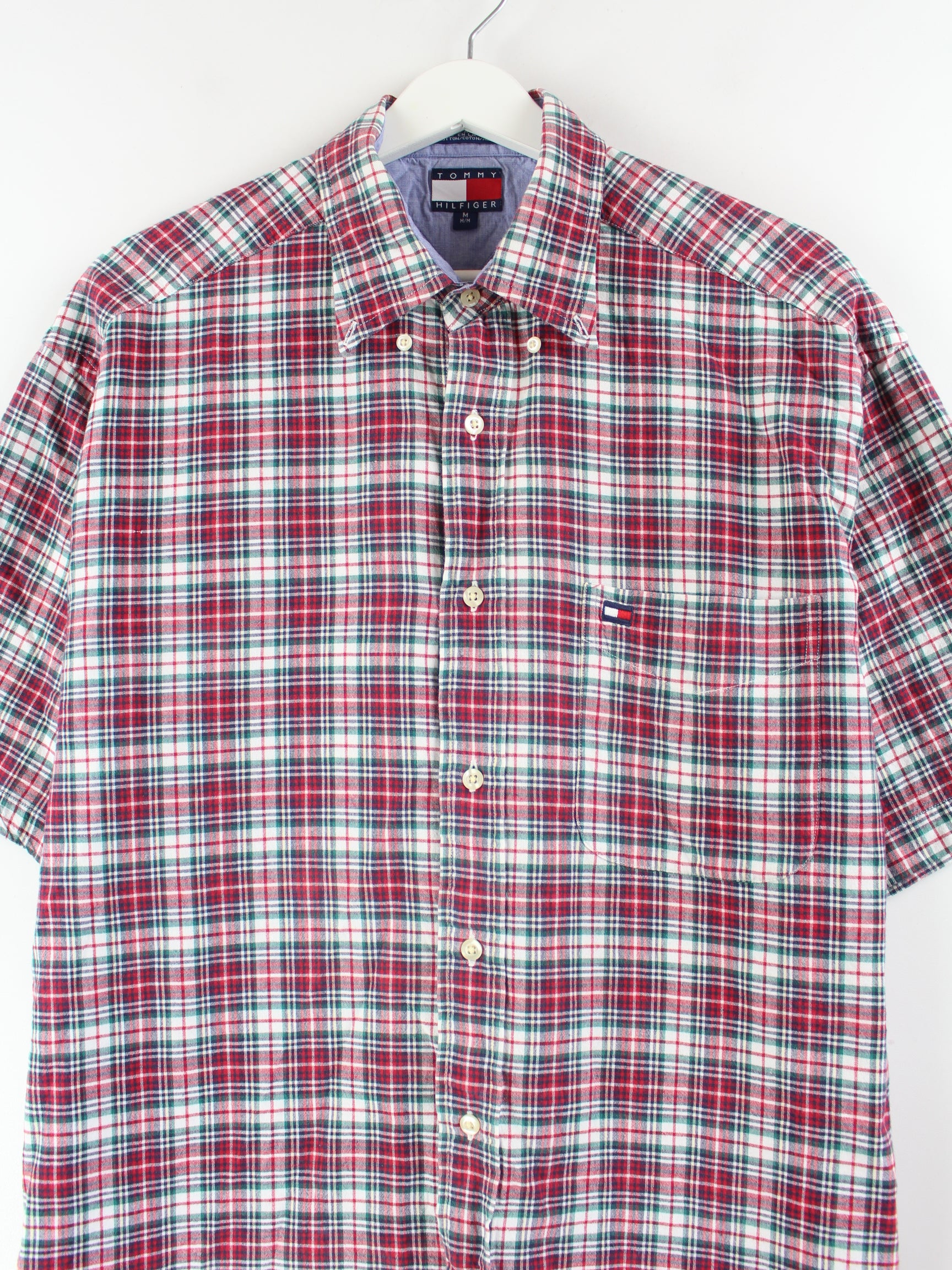 Tommy Hilfiger y2k flannel short sleeve shirt red XL
