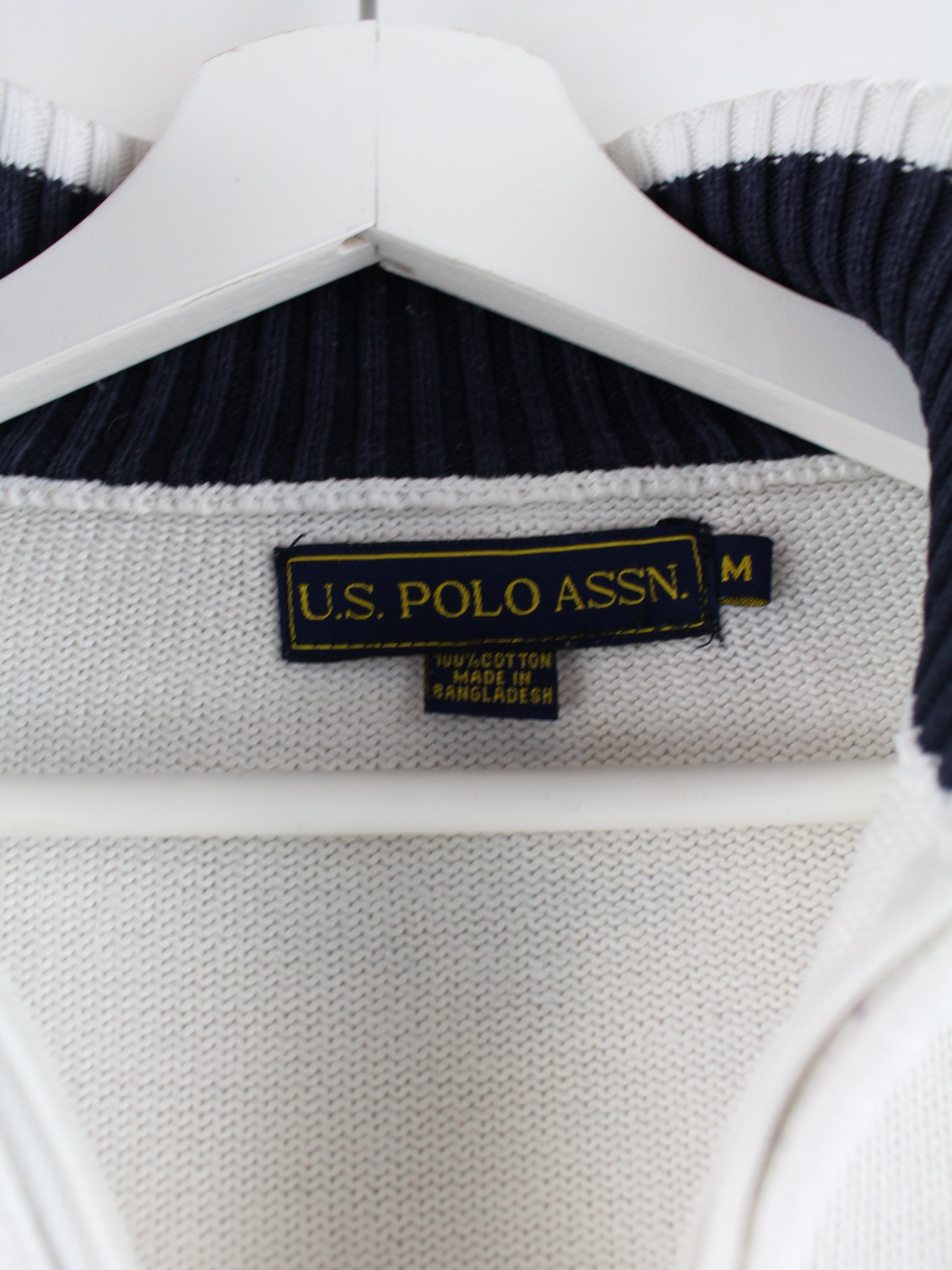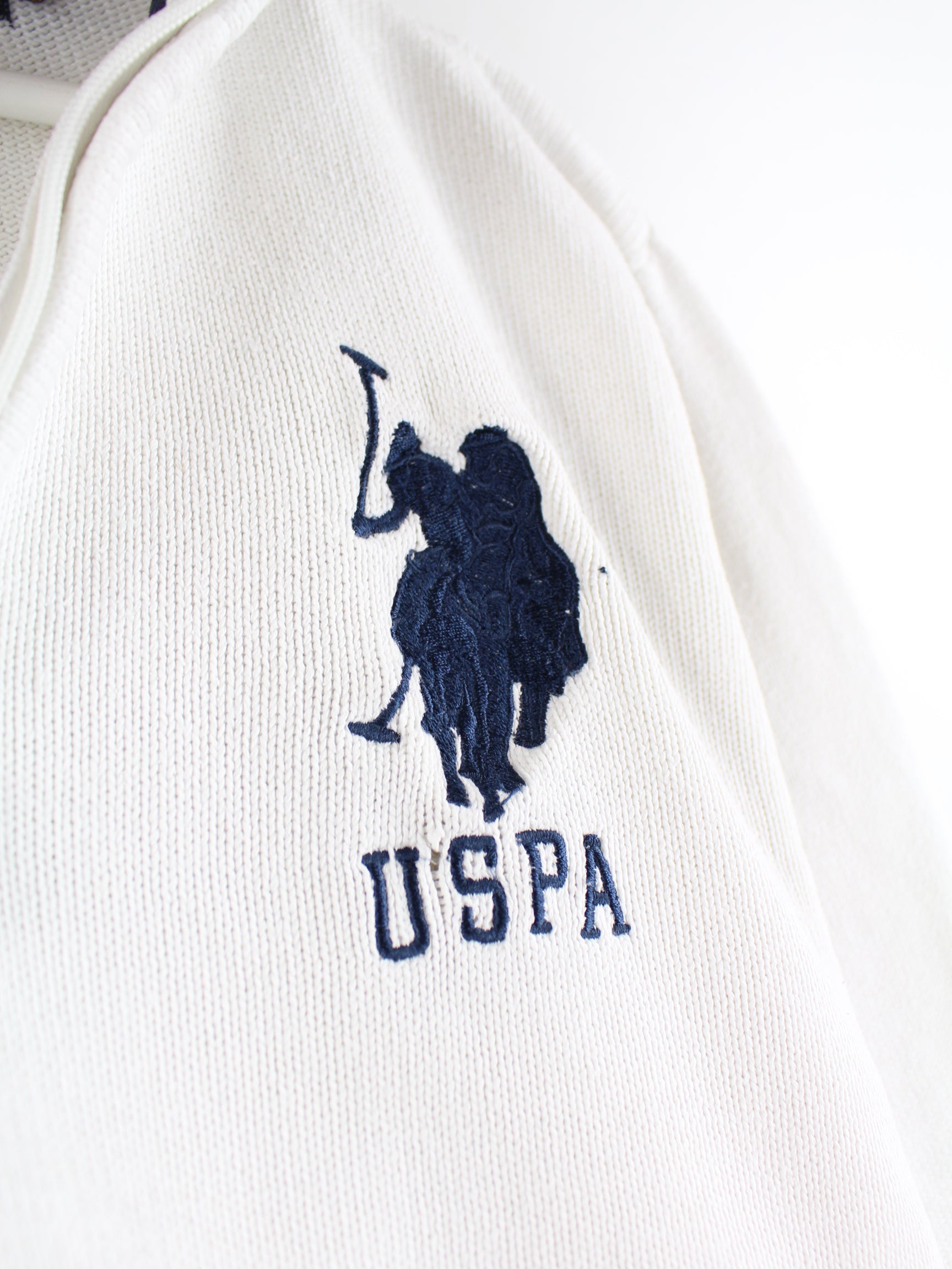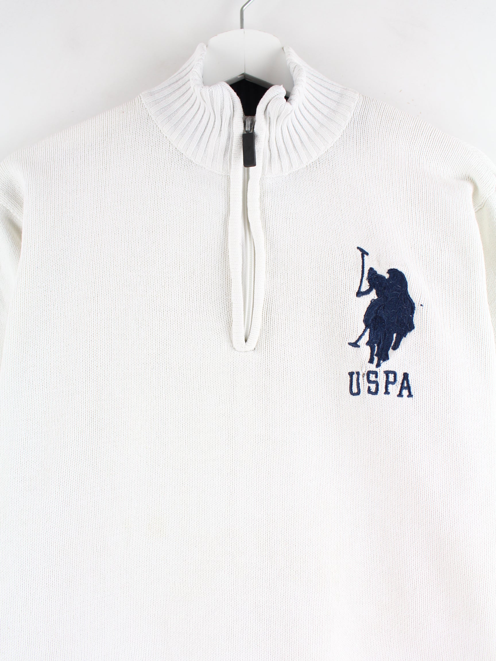 Sweater from the brand US Polo ASSN. with embroidered logo and half zip in size M. It is made of cotton and available in white.