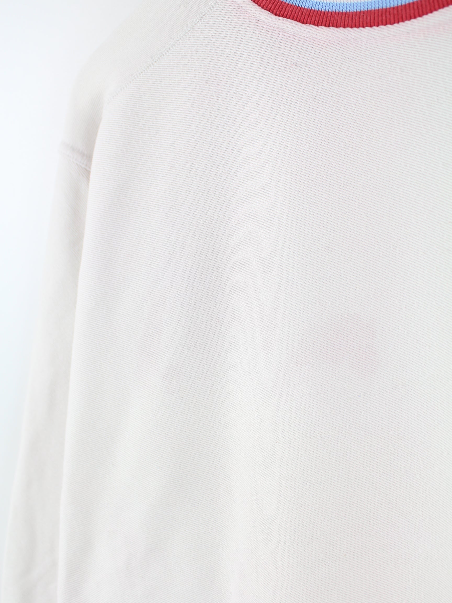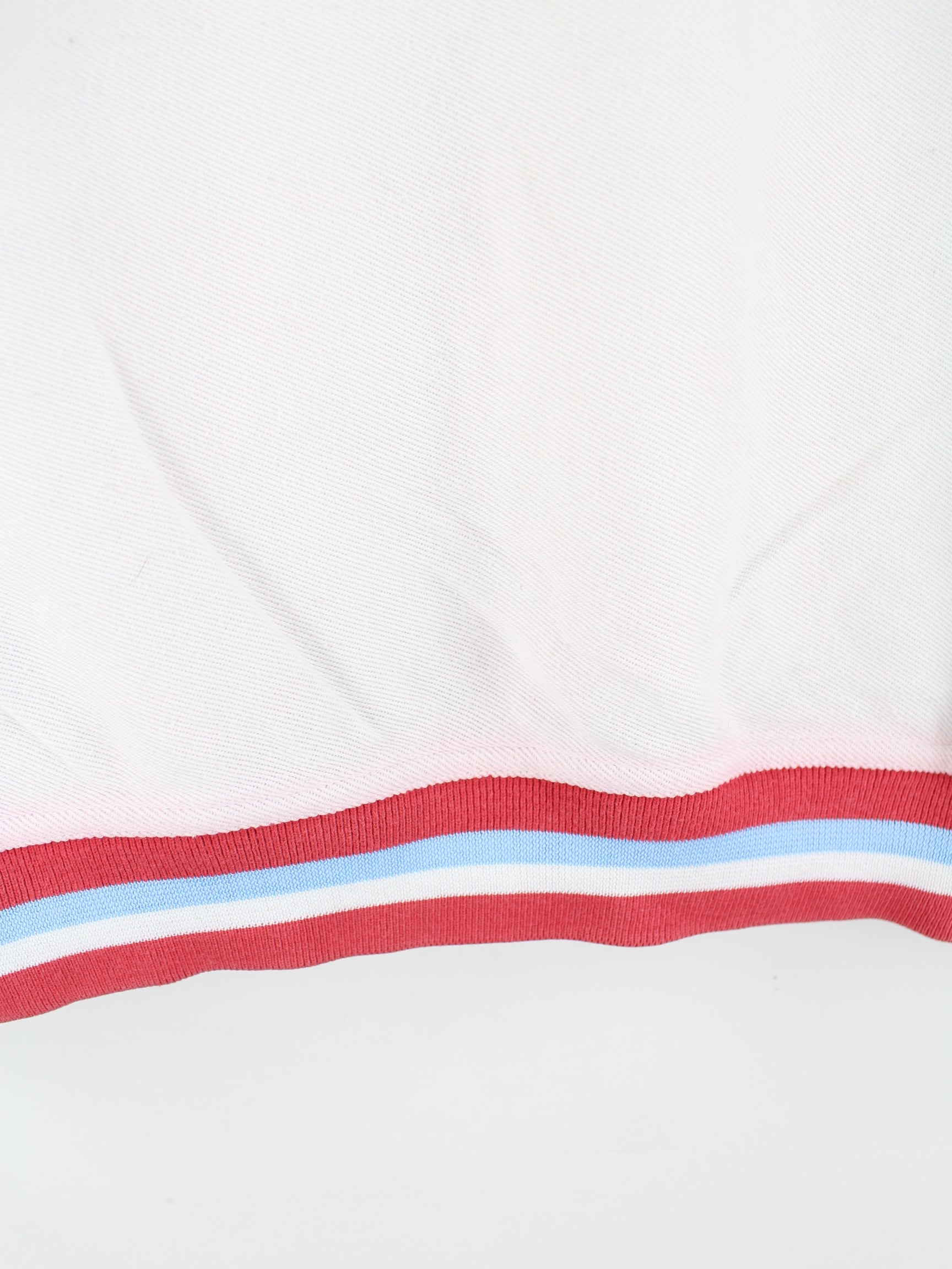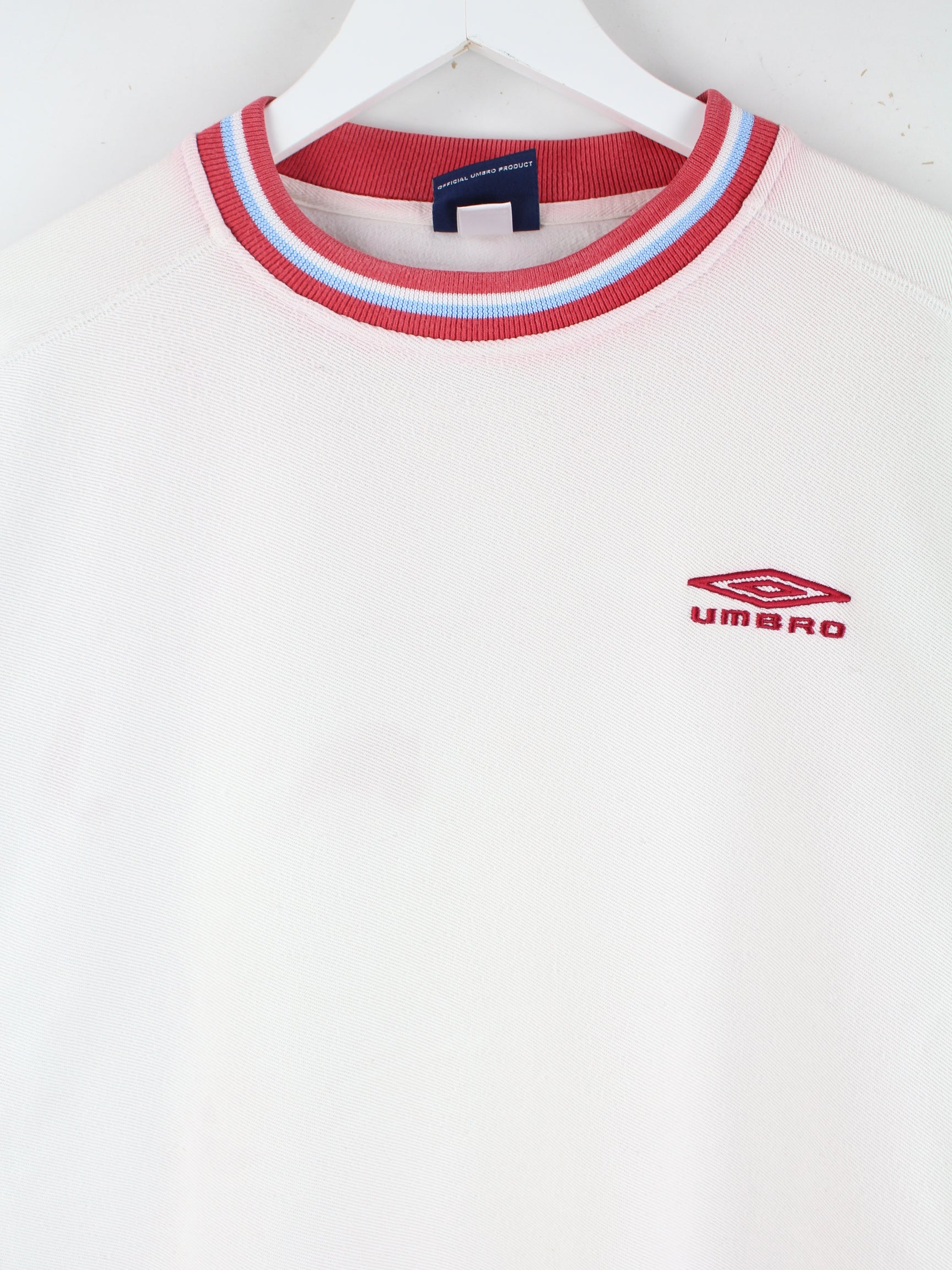 Sweater von Umbro mit Stickereien in Größe L. Er ist aus einer Baumwollmischung hergestellt und in Weiß im Bestand.