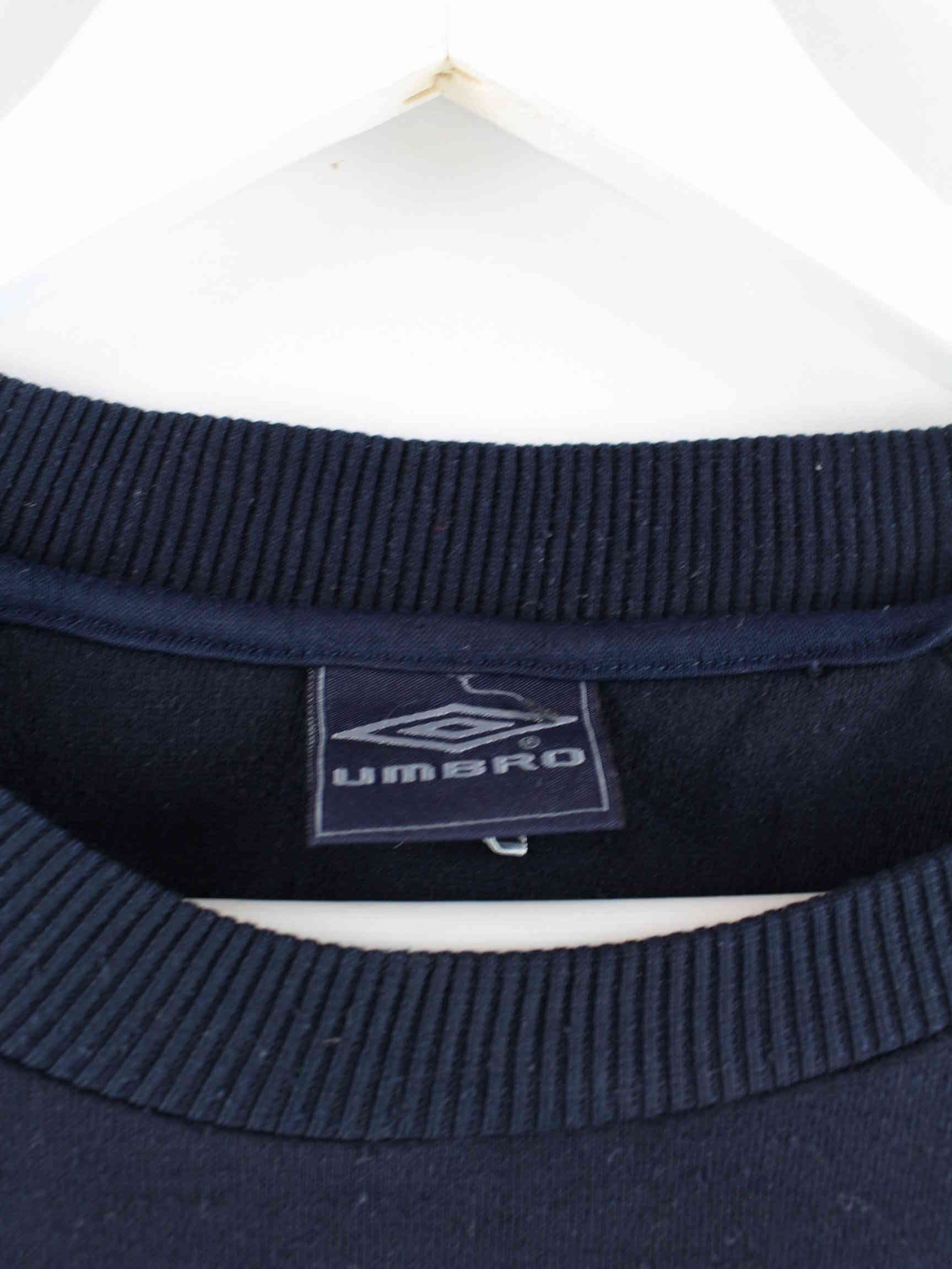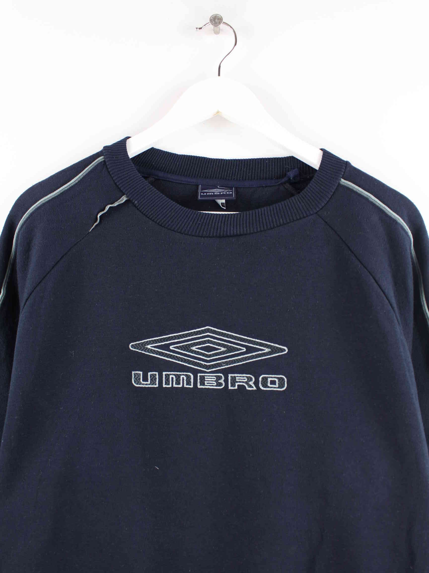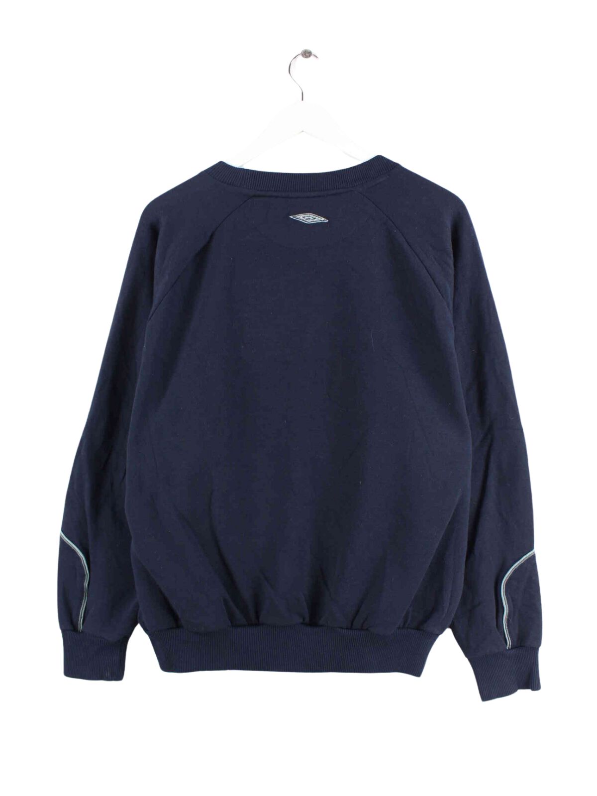 Umbro brand sweater with embroidery in size M from the early 2000s. It's made from a cotton blend and comes in blue.