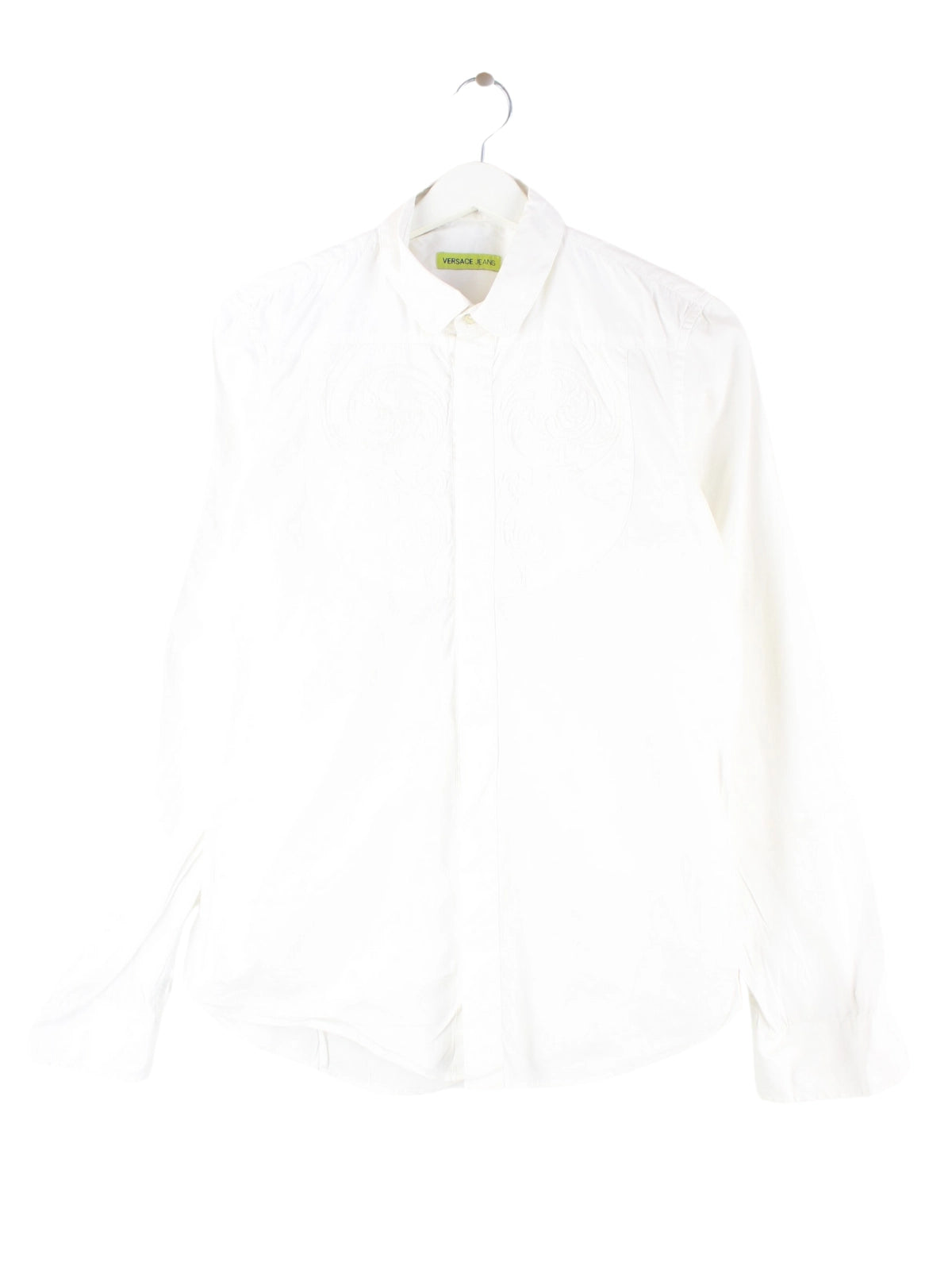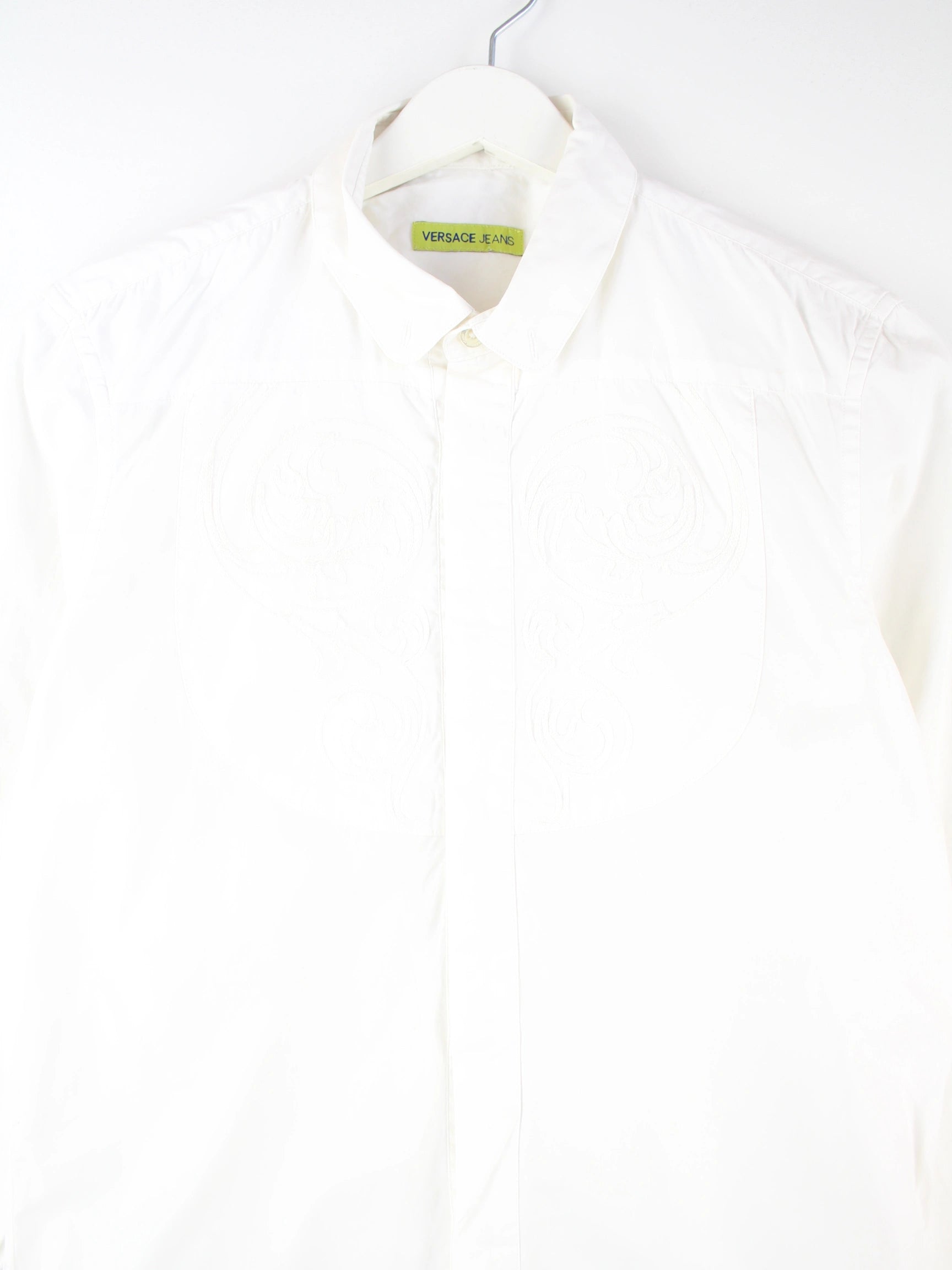 Hemd der Marke Versace mit Stick in Größe M aus Anfang der 2000'er. Es ist aus Baumwolle hergestellt und in Weiß im Angebot.
