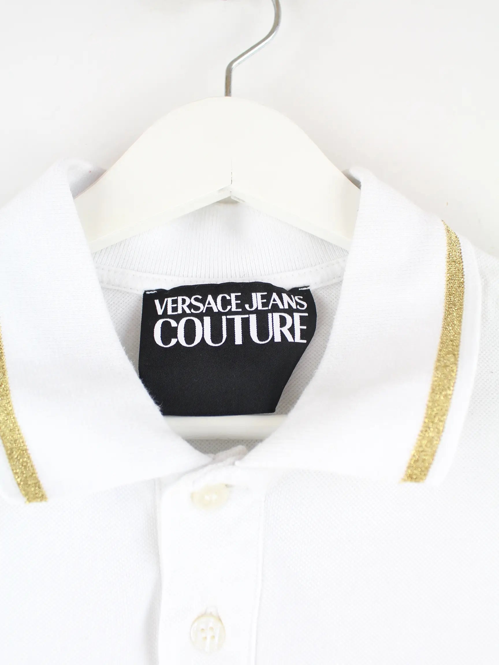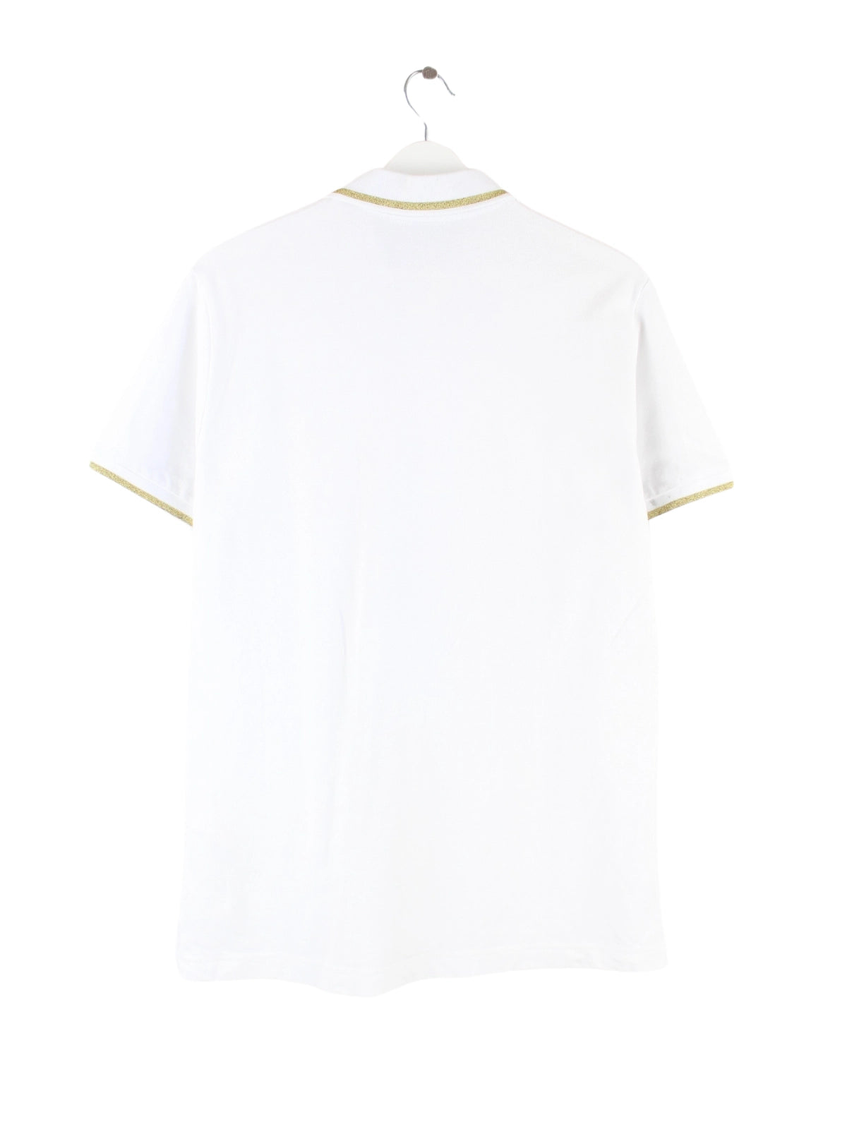 Weißes Poloshirt mit Stick aus dem Hause Versace in Größe L. Es ist aus Baumwolle produziert. Den Zustand würden wir als 'In Ordnung' bezeichnen (vergl. Bilder).