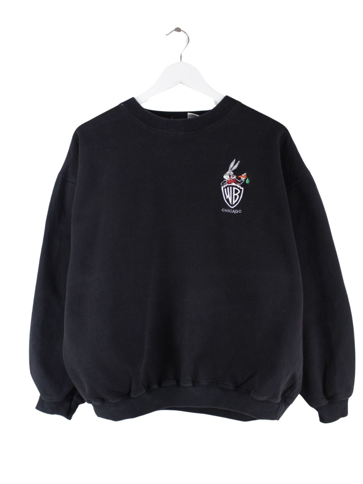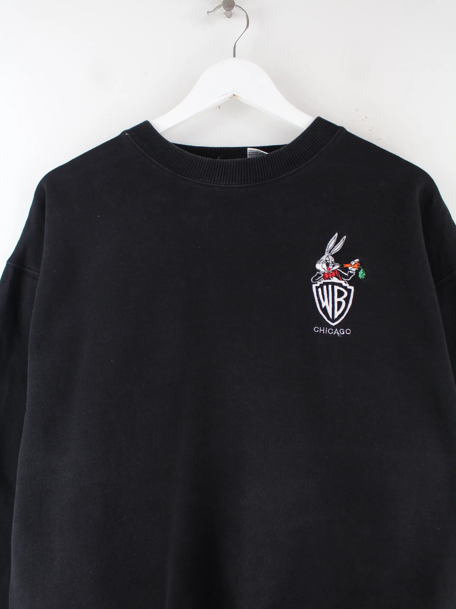 Sweater der Marke Warner Bros mit gesticktem Logo in Größe L. Er ist aus einer Baumwollmischung gefertigt und in Schwarz lieferbar.