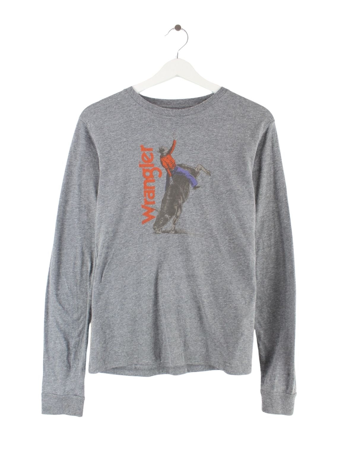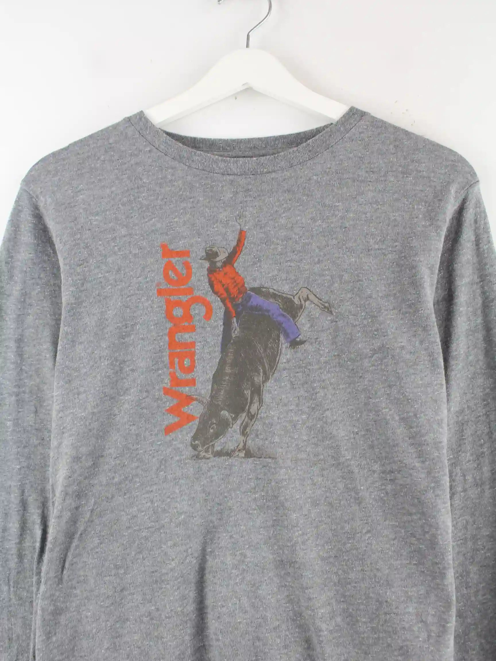Sweatshirt des Labels Wrangler in Größe XL. Es ist aus Baumwolle gemacht und in Grau im Angebot. Mit tollem Cowboy Print.