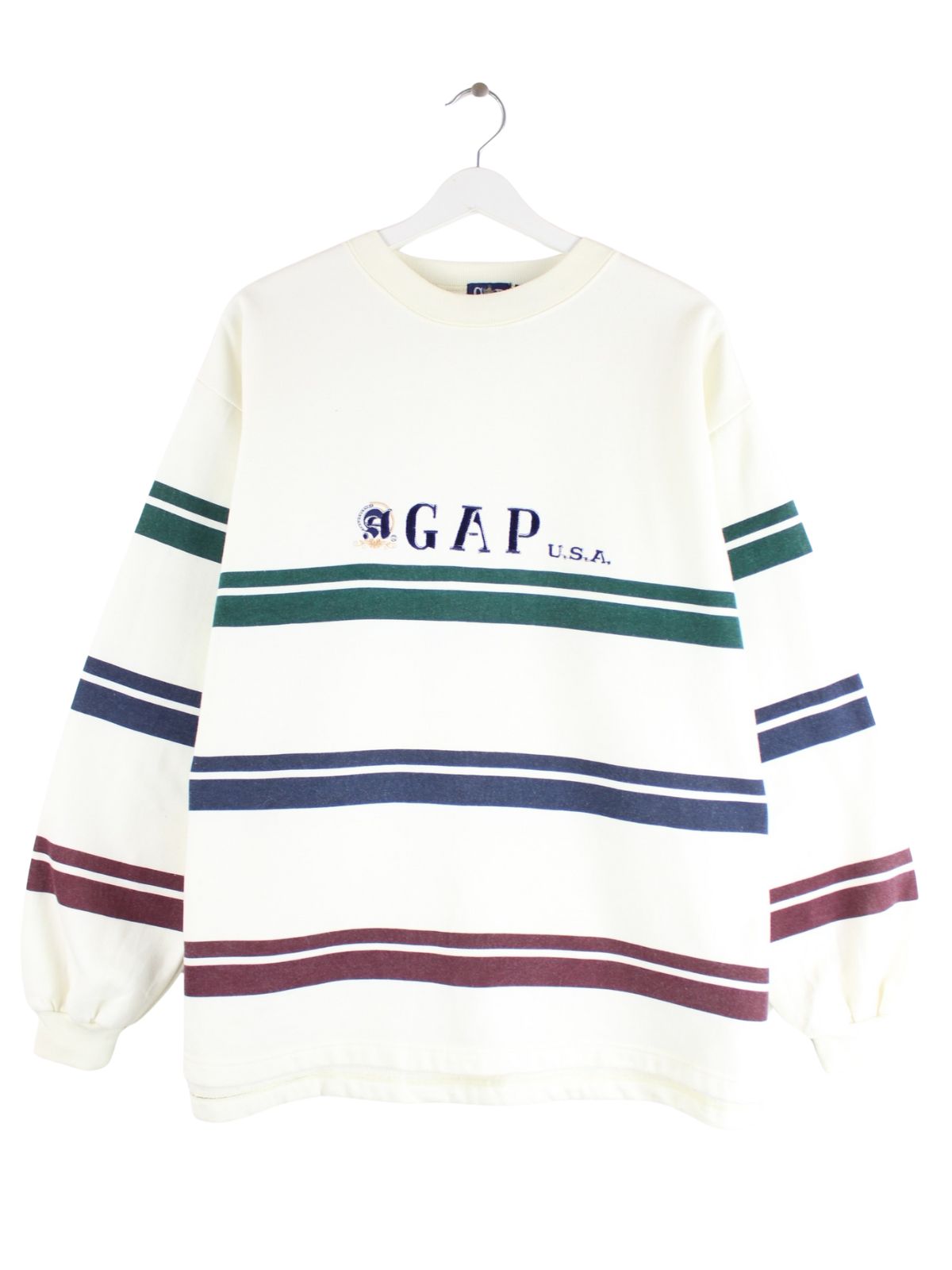 GAP 90s Vintage Striped Print Sweater Weiß L