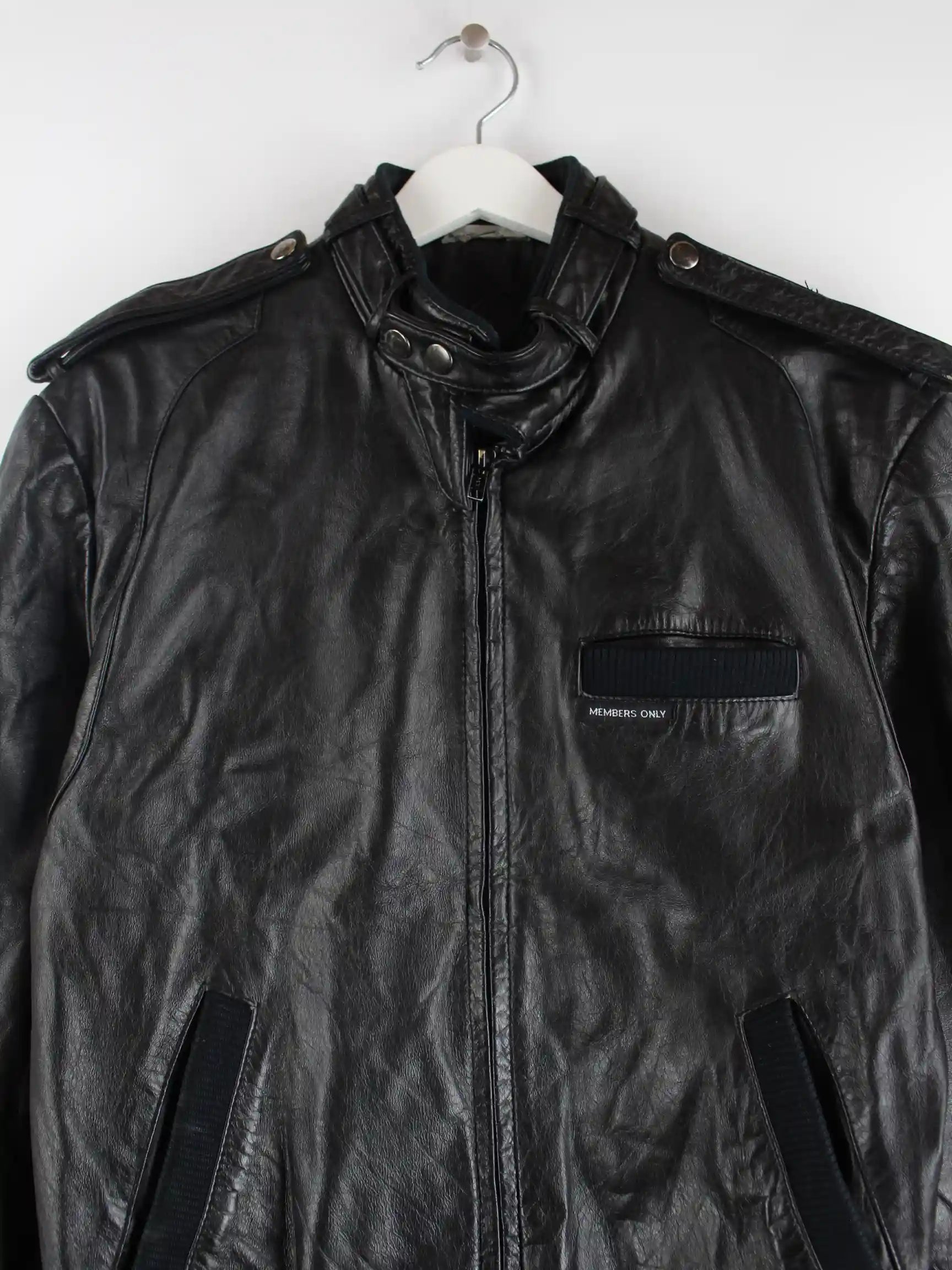 Members Only Biker Leder Jacke Schwarz S