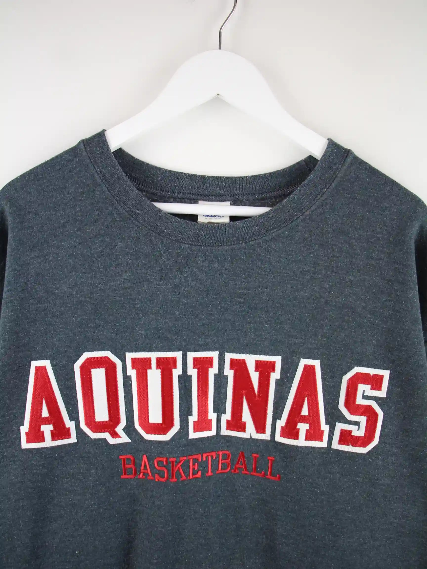 Grauer Sweater aus dem Hause Gildan in Größe L. Er ist aus einer Baumwollmischung angefertigt und in gutem Zustand auf Lager.