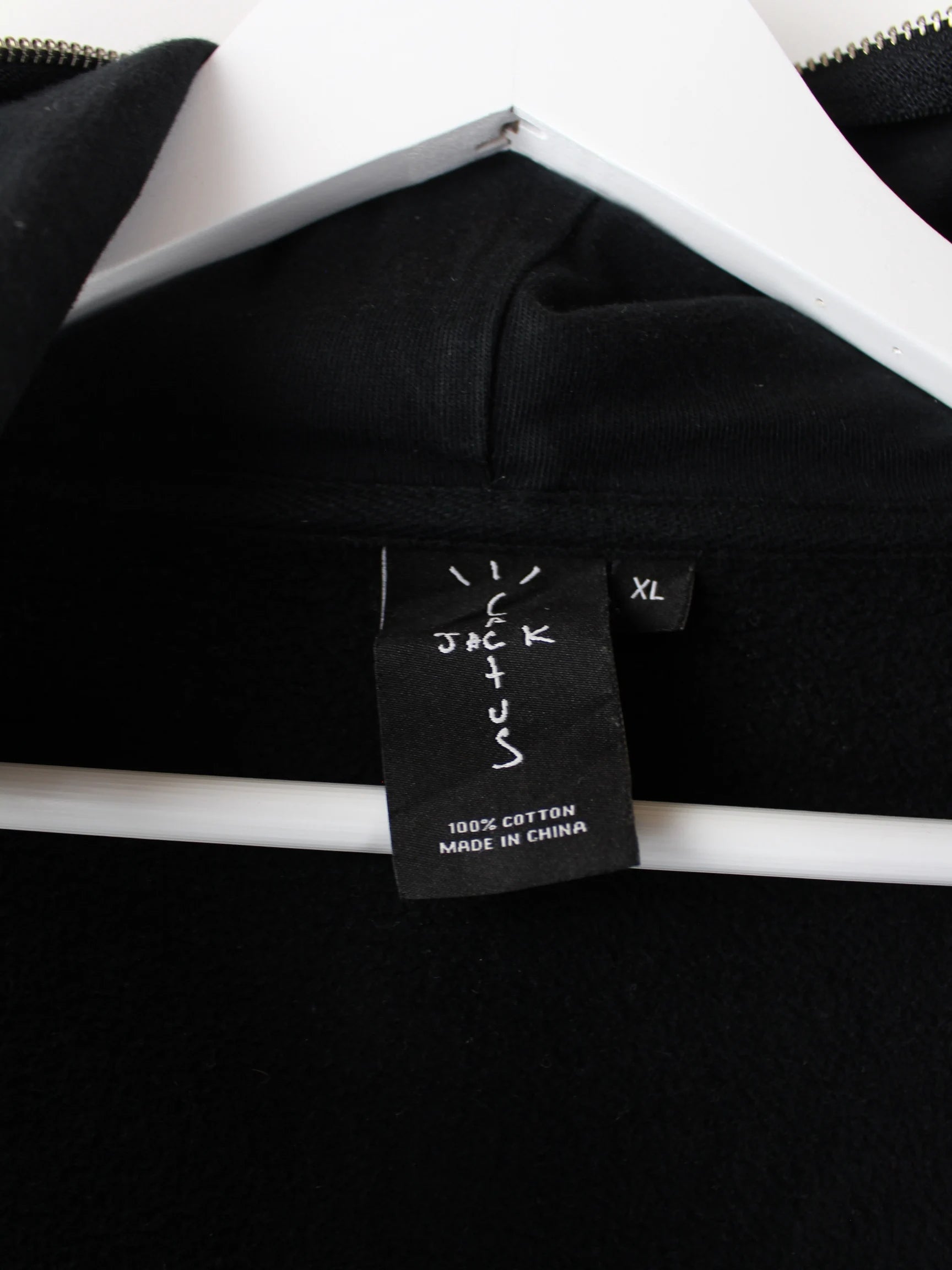 Schwarzer Hoodie mit durchgehendem Reißverschluß vom Label Cactus Jack in Größe XL. Er ist aus einer Baumwollmischung gefertigt und in gutem Zustand zu haben.