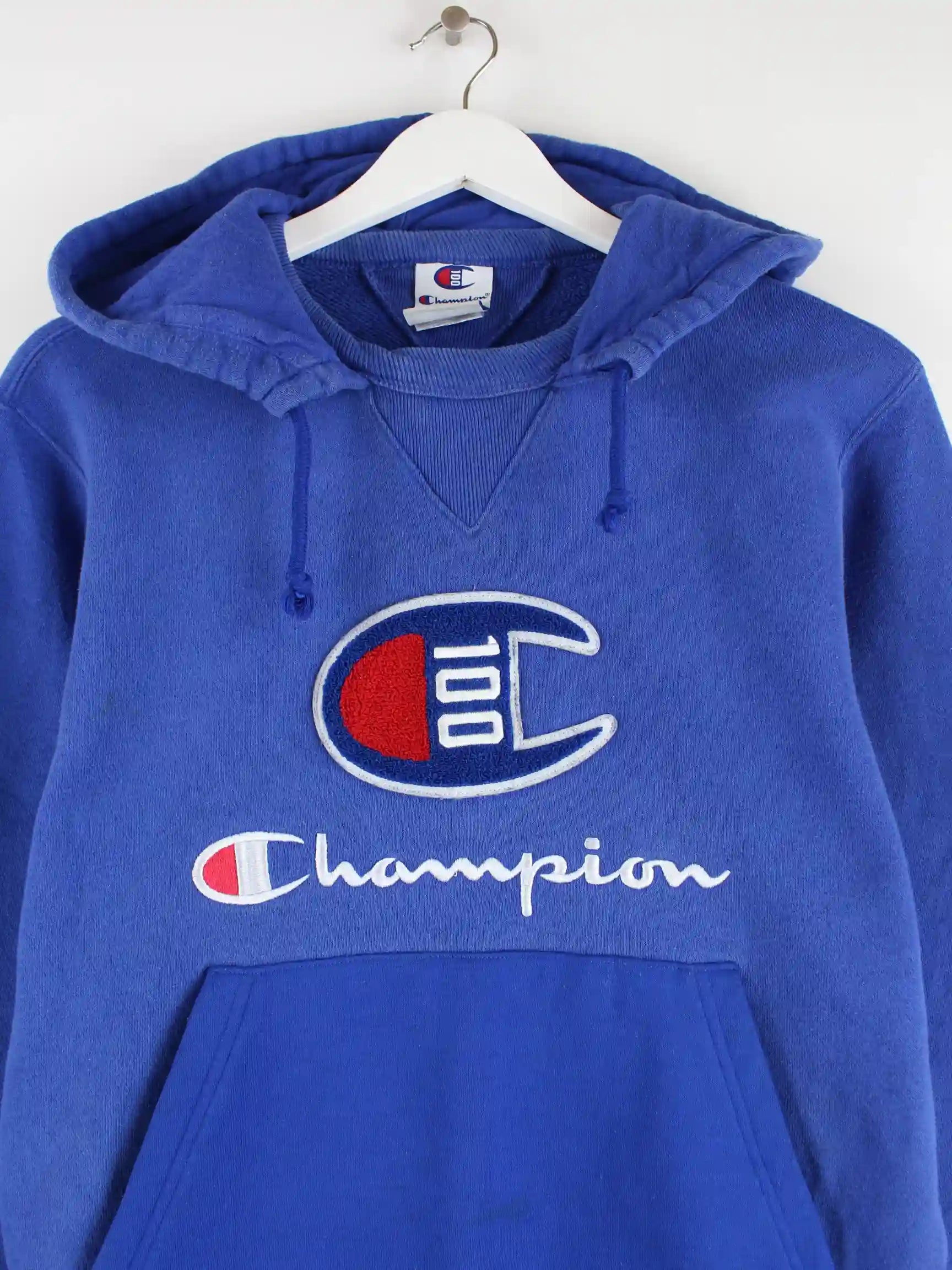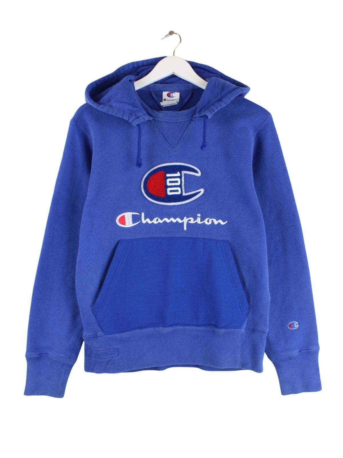 Hoodie vom Brand Champion in Größe S. Er ist aus einer Baumwollmischung angefertigt und in Blau im Bestand.