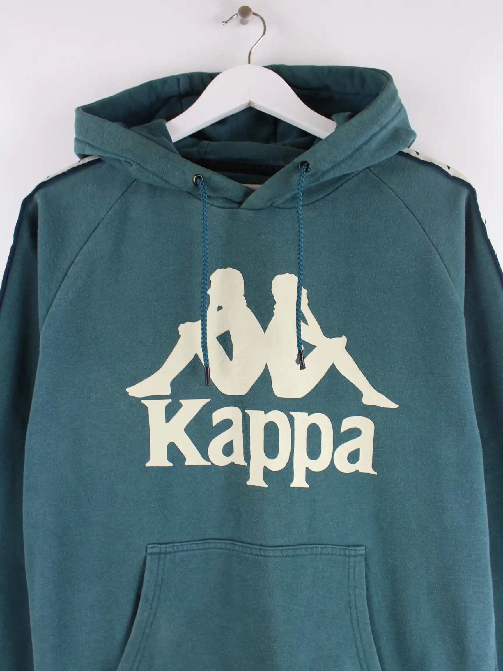 Grüner Hoodie vom Label Kappa in Größe M. Er ist aus einer Baumwollmischung angefertigt und in gutem Zustand in Stock. Mit schönem undefined Print.