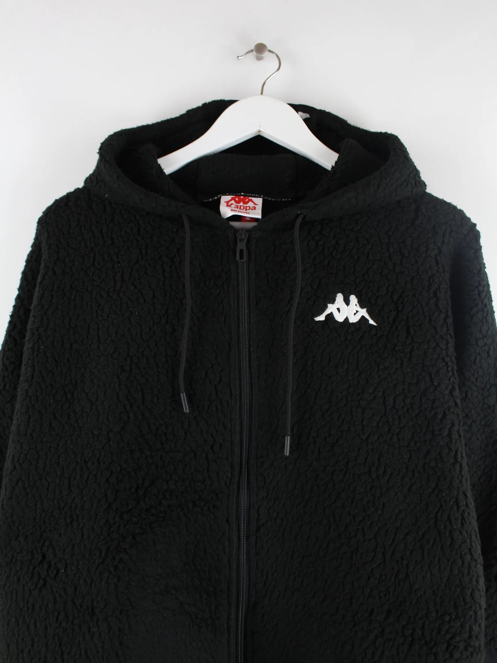 Schwarzer Hoodie mit Reißverschluß vom Label Kappa in Größe M. Er ist aus gemütlichem Fleece gemacht und in sehr gutem Zustand zu haben.