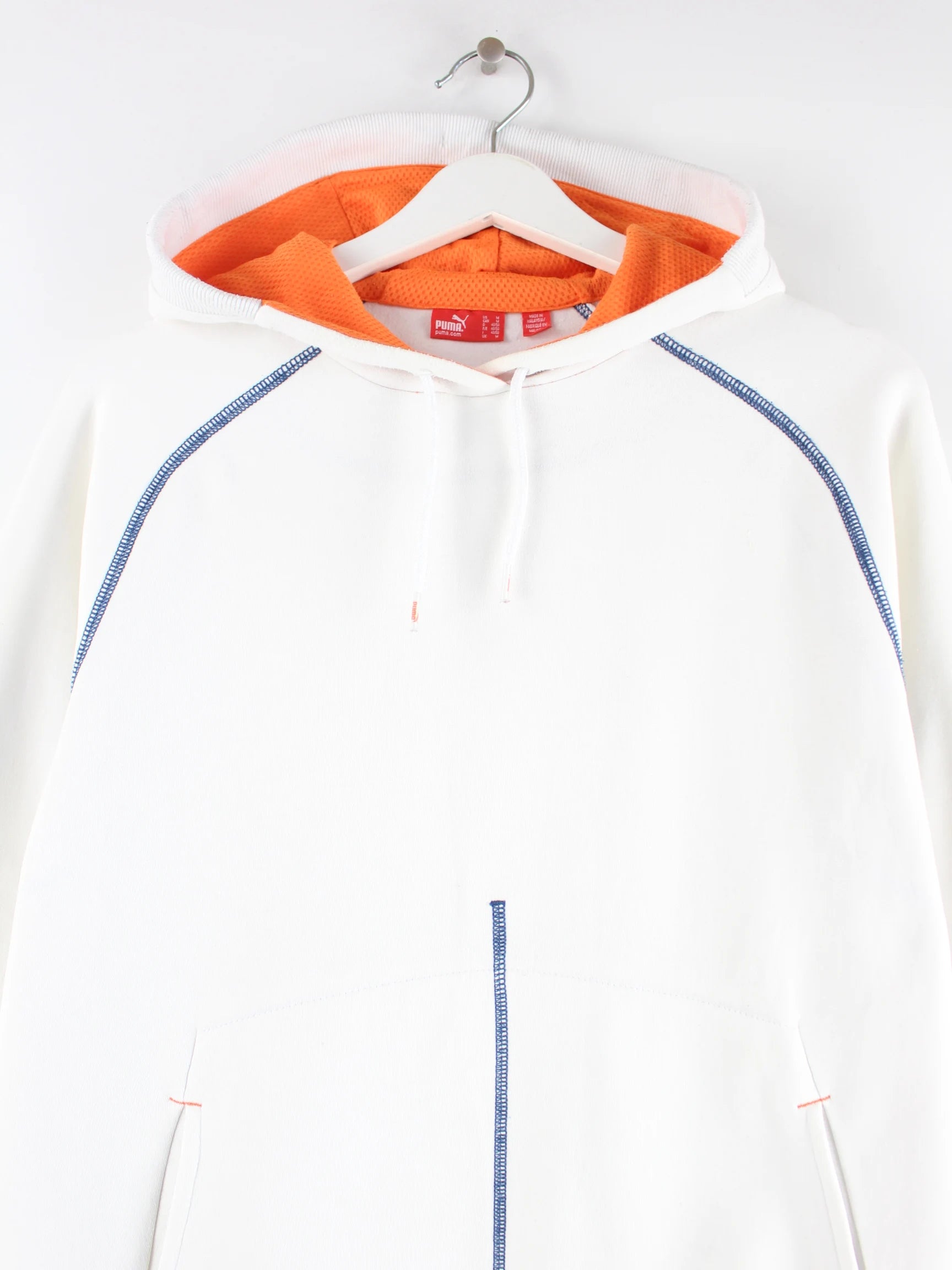 Hoodie der Marke Puma in Größe M. Er ist aus einer Baumwollmischung angefertigt und in Weiß lieferbar.