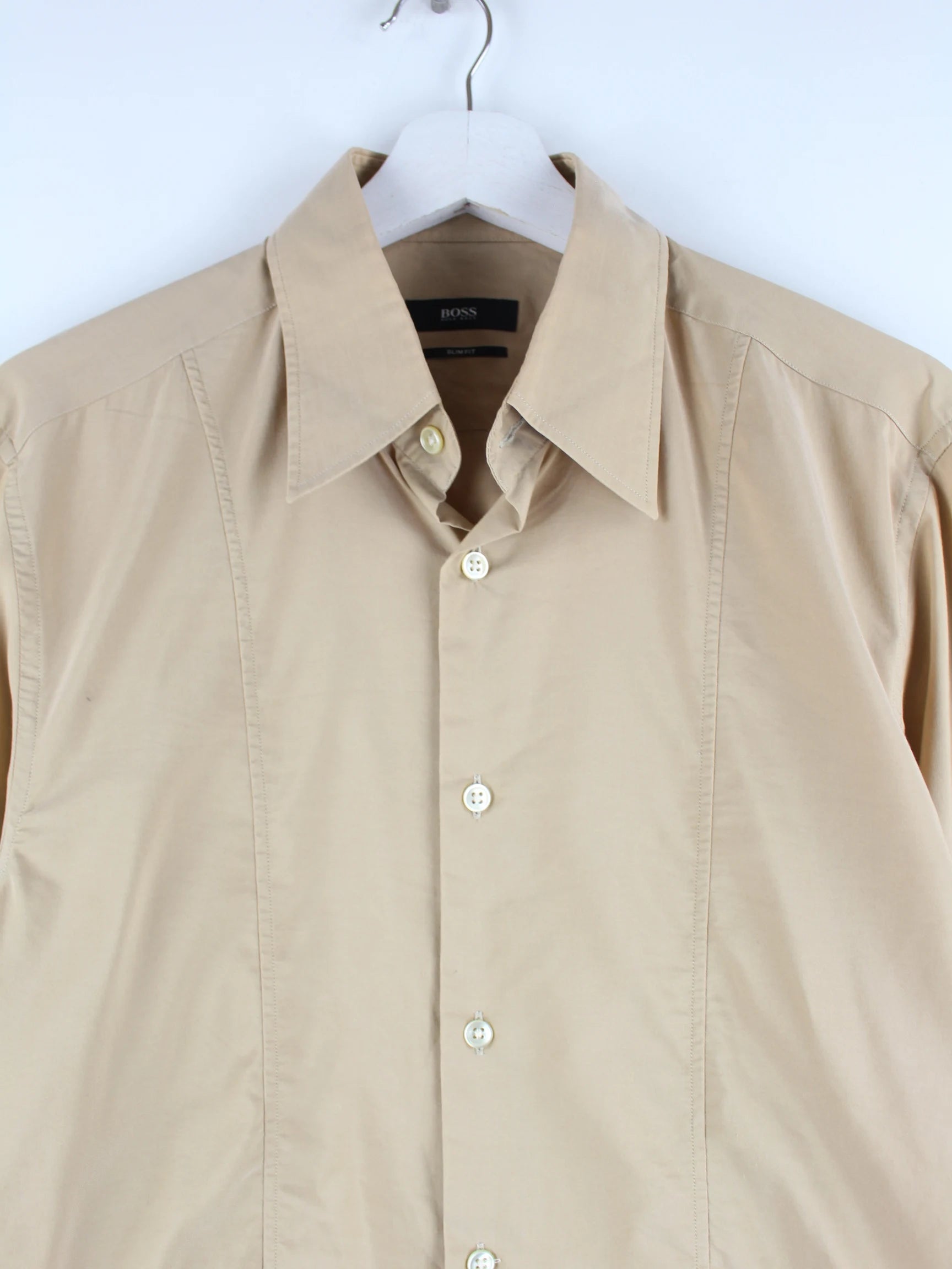 Hemd des Labels Hugo Boss in Größe M. Es ist aus Baumwolle gemacht und in Braun in Stock.