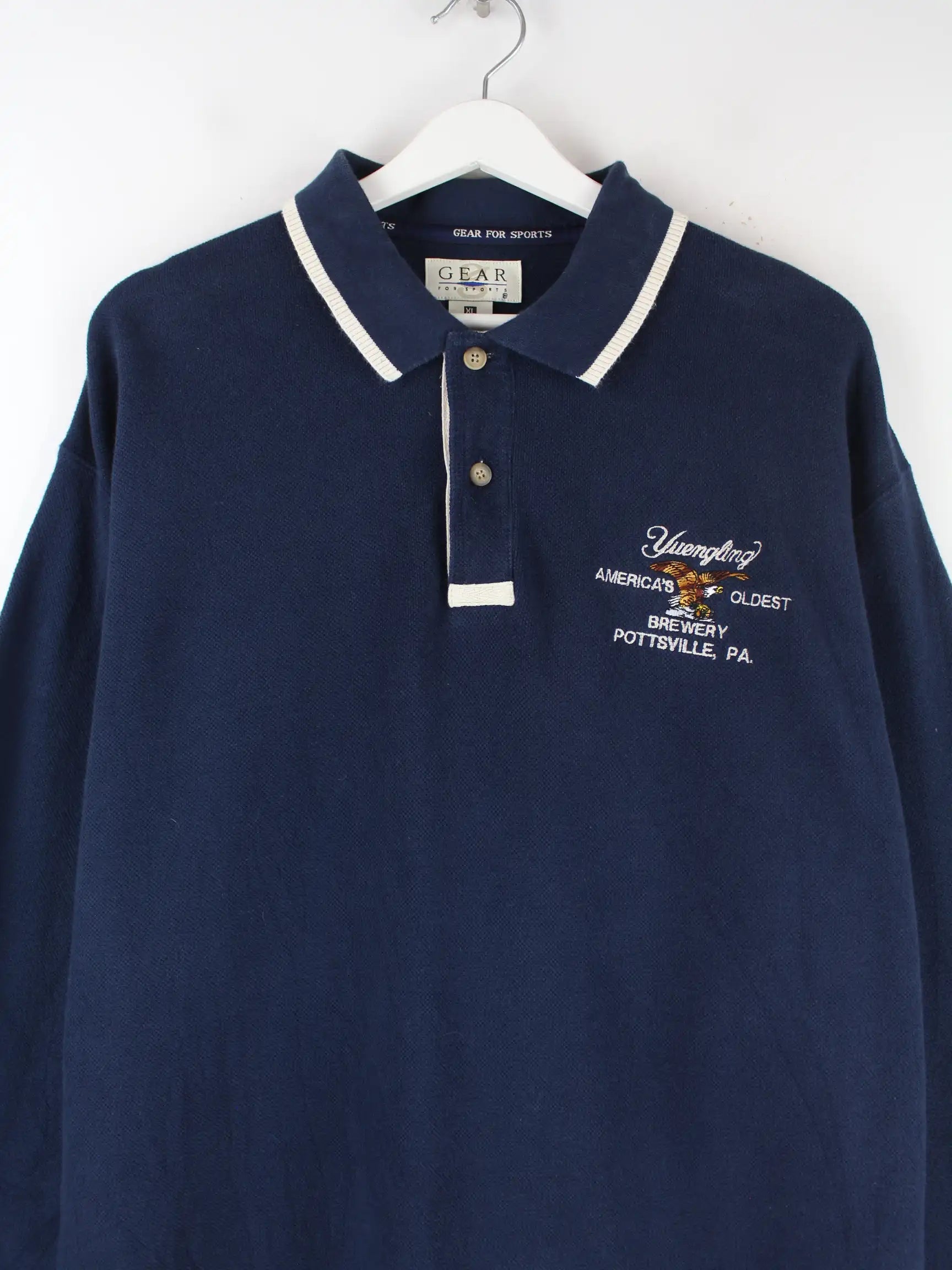 Poloshirt der Marke Gear for Sports mit gestickten Motiven in Größe XL. Es ist aus Baumwolle gefertigt und in Blau zu haben.