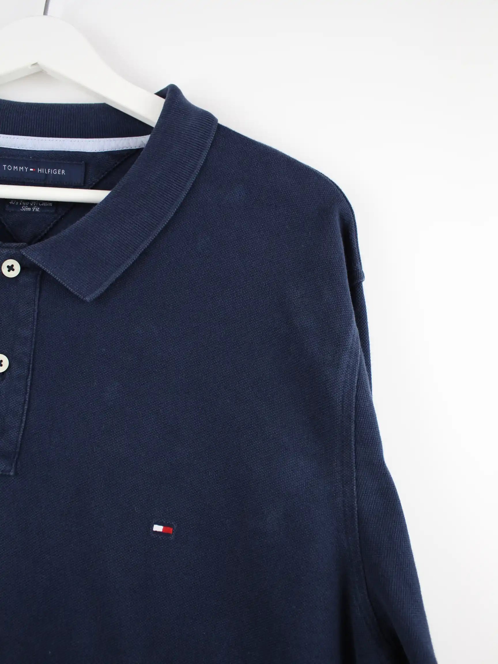 Poloshirt aus dem Hause Tommy Hilfiger mit Stick in Größe XXL. Es ist aus Baumwolle gefertigt und in Blau im Angebot.