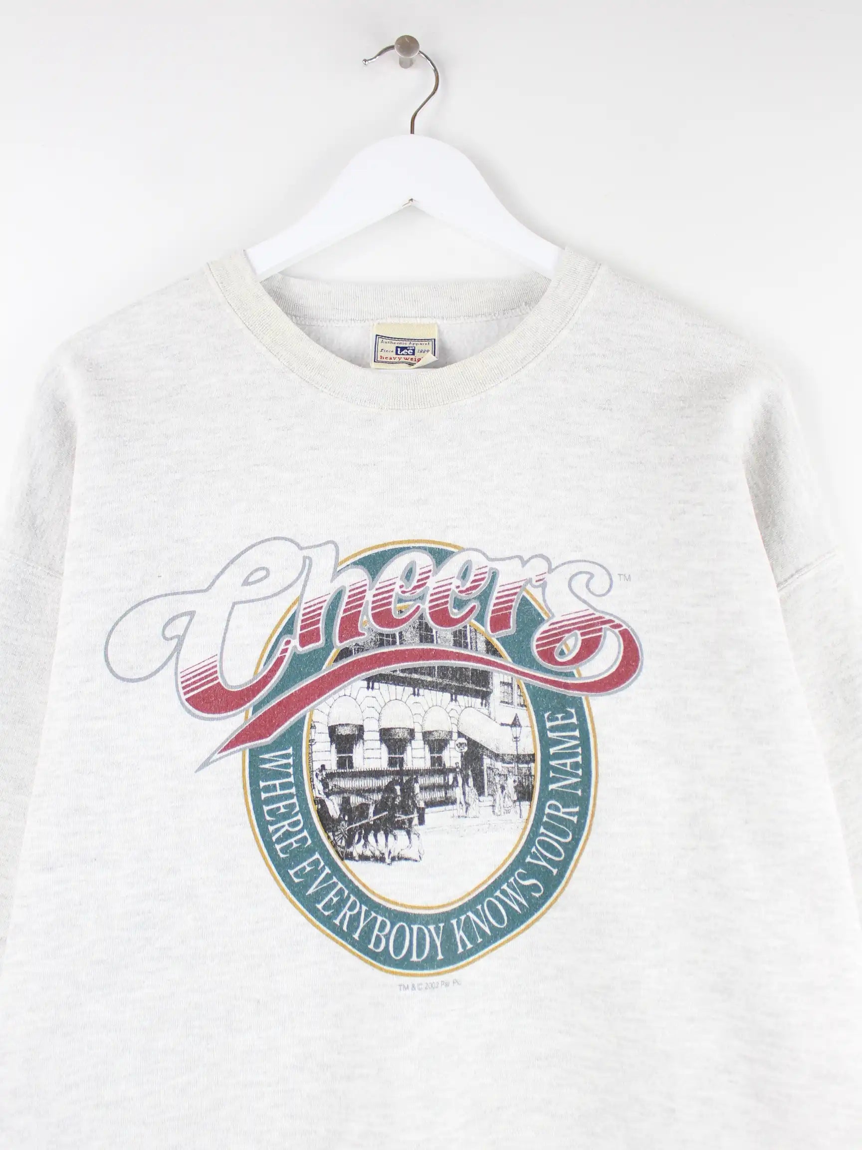 Sweater des Labels Lee in Größe L. Er ist aus einer Baumwollmischung angefertigt und in Grau bei uns zu bekommen. Mit chiquem Cheers Print.
