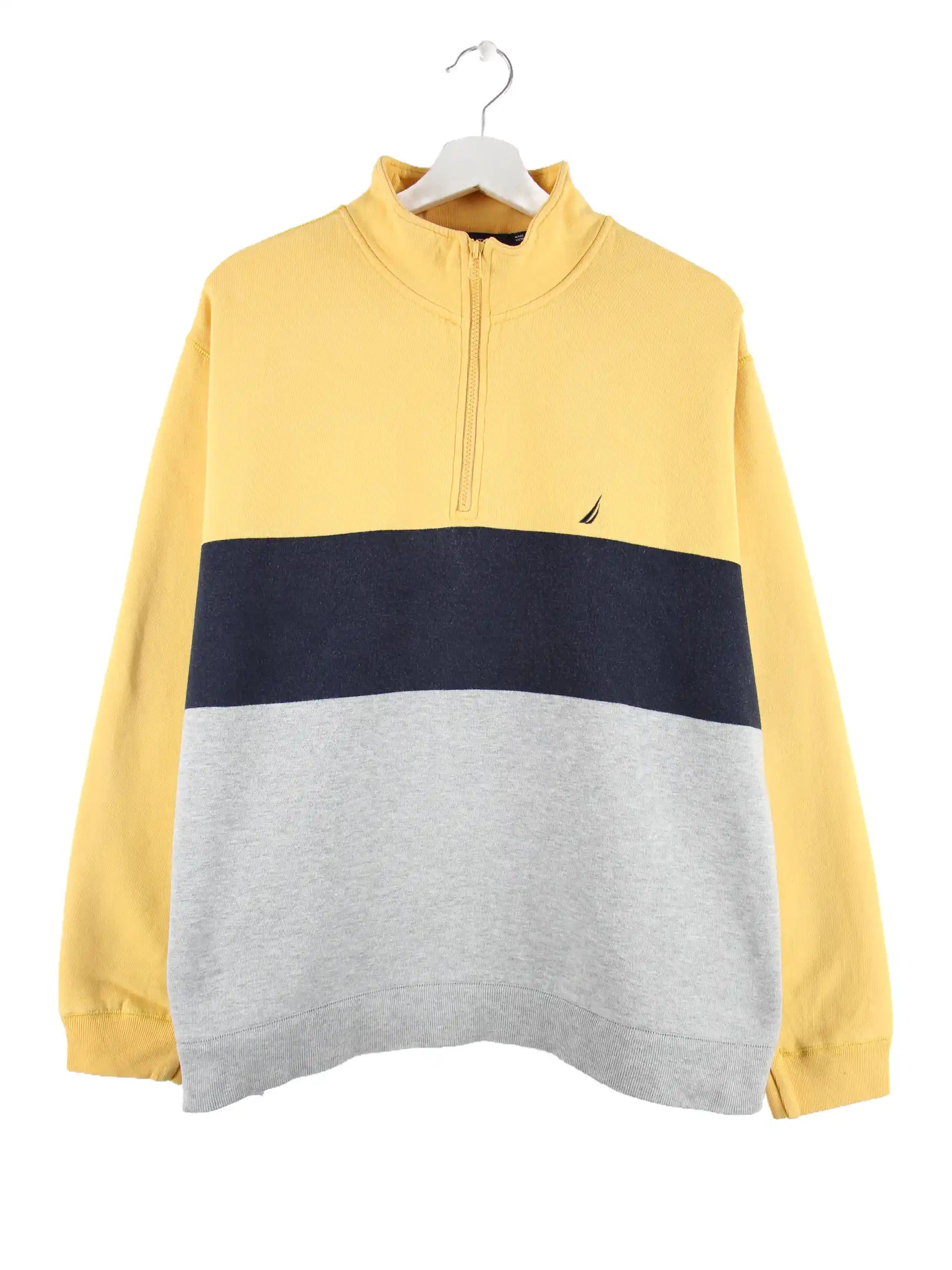 Sweater der Brand Nautica mit kurzem Reißverschluß in Größe L. Er ist aus einer Baumwollmischung gemacht und in bunten Farben bei uns zu bekommen.