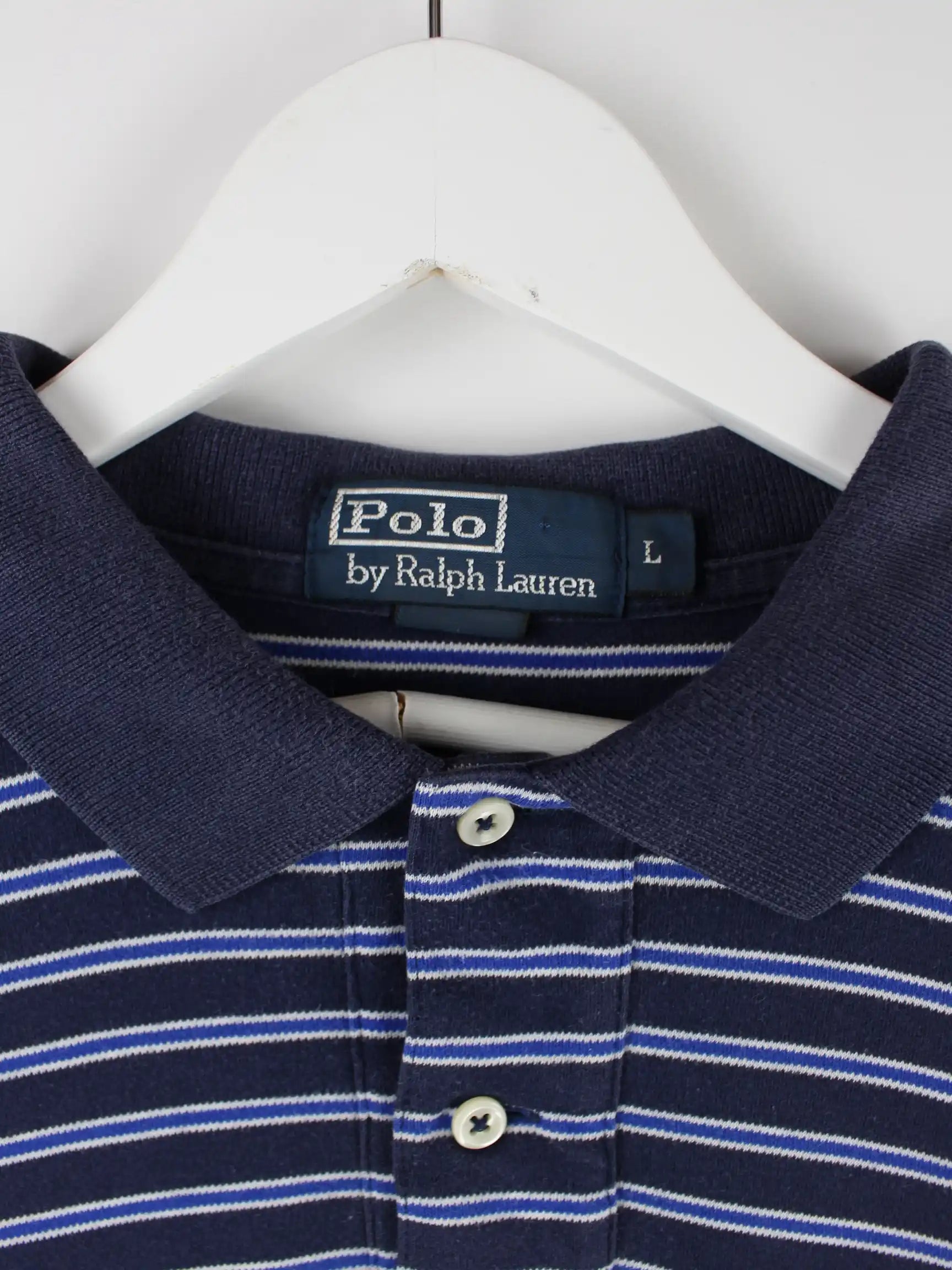 Ralph Lauren 90s Vintage Stripe Polo Blau L